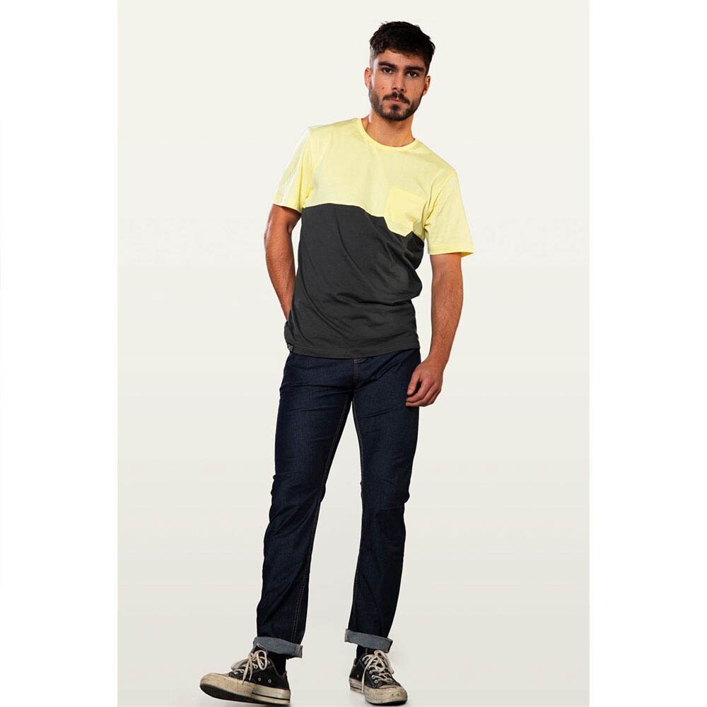 Двухцветная футболка из органического хлопка с нагрудным карманом, короткими рукавами и круглым вырезом для городского стиля.