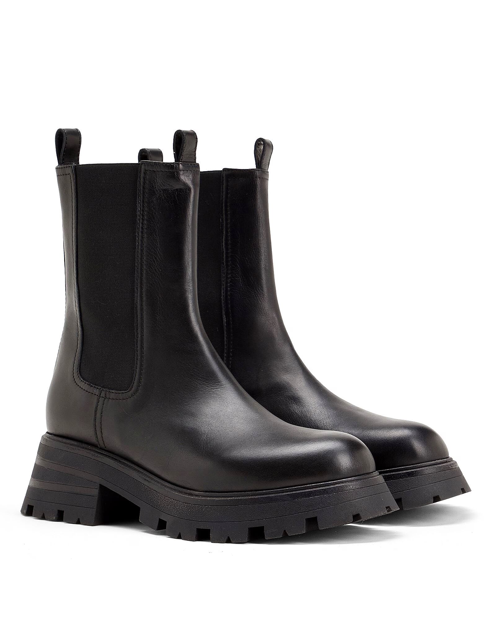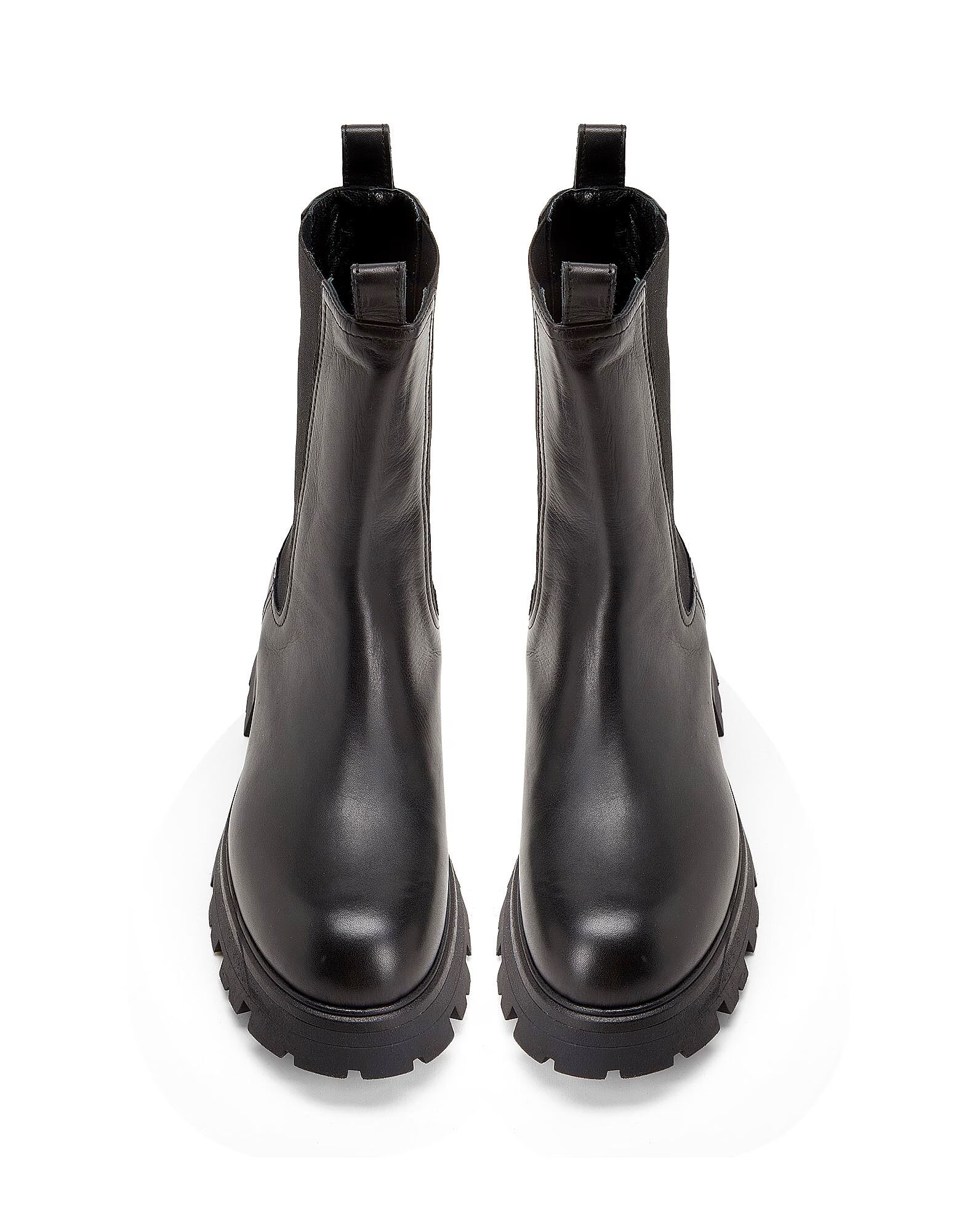 Ботильоны из натуральной кожи однотонного цвета с эластичными вставками и круглым носком. Модель произведена в Италии и дополнена резиновой рифленой подошвой.