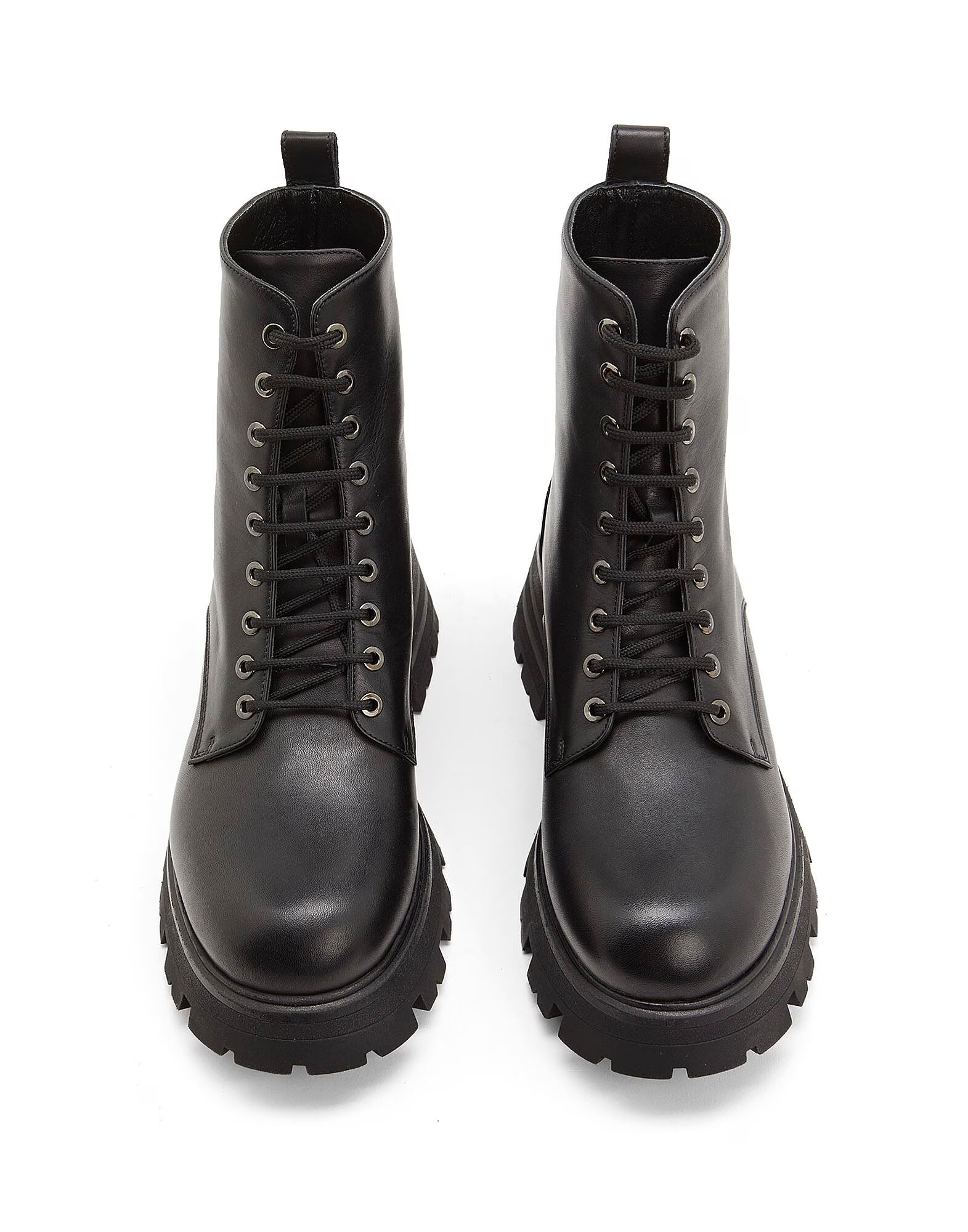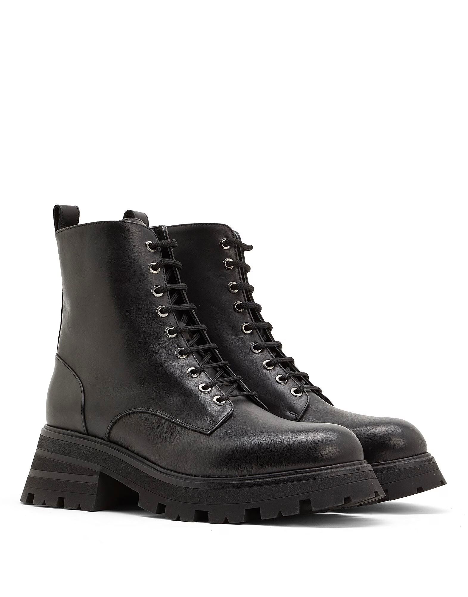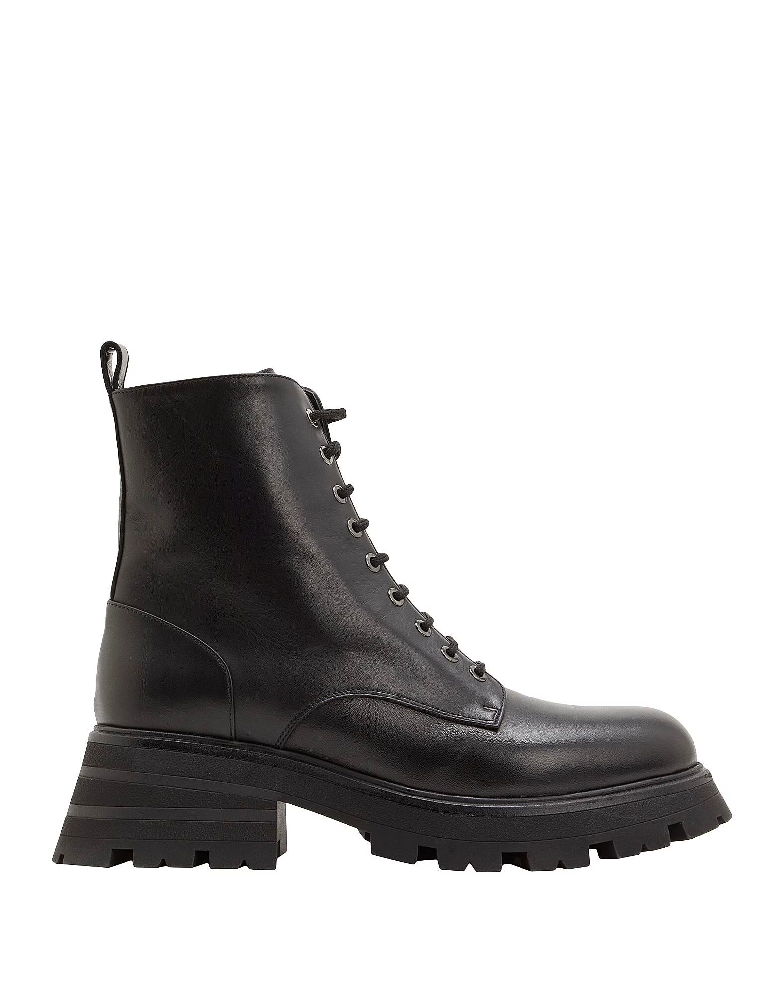 Эти ботильоны с резиновой подошвой и рифленым протектором в городском стиле. Сделаны в Италии, выполнены из однотонной кожи, имеют шнуровку и круглый носок.