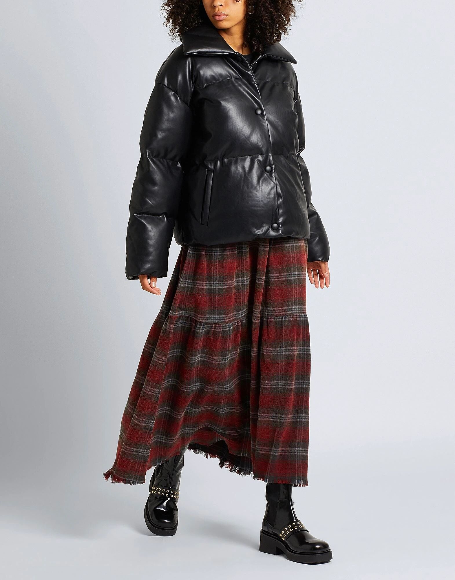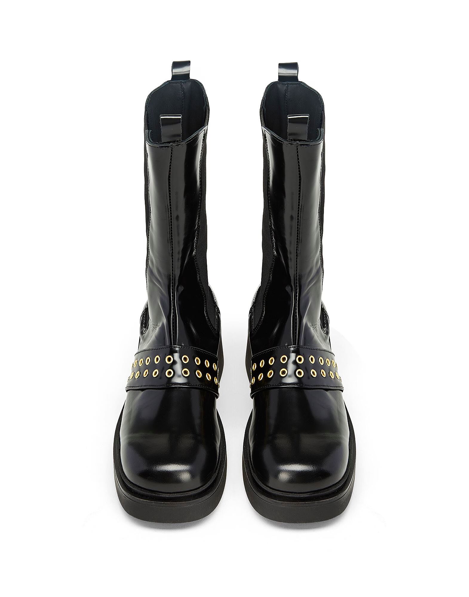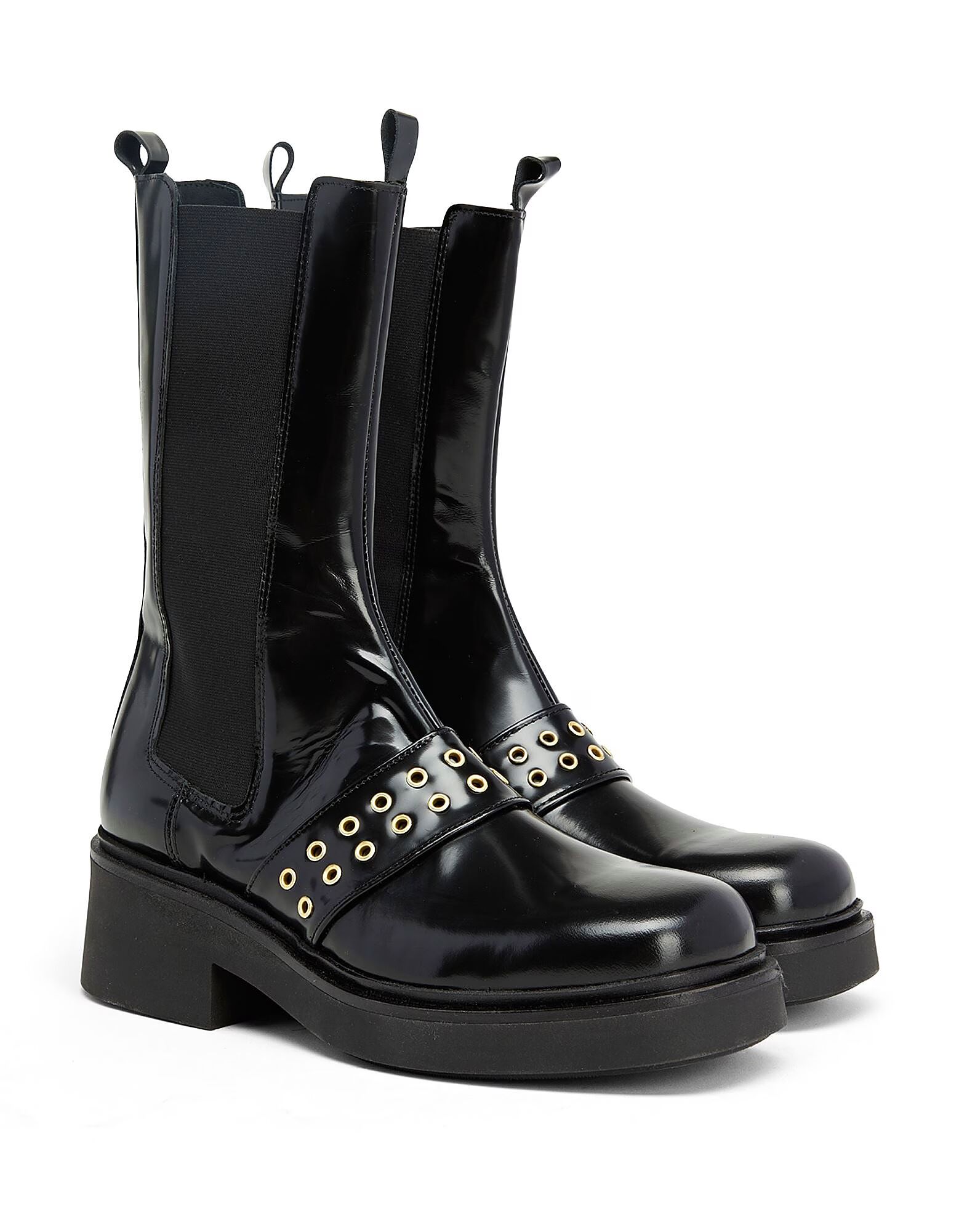 • Круглые металлические заклёпки украшают верх этих однотонных кожаных ботинок. Модель