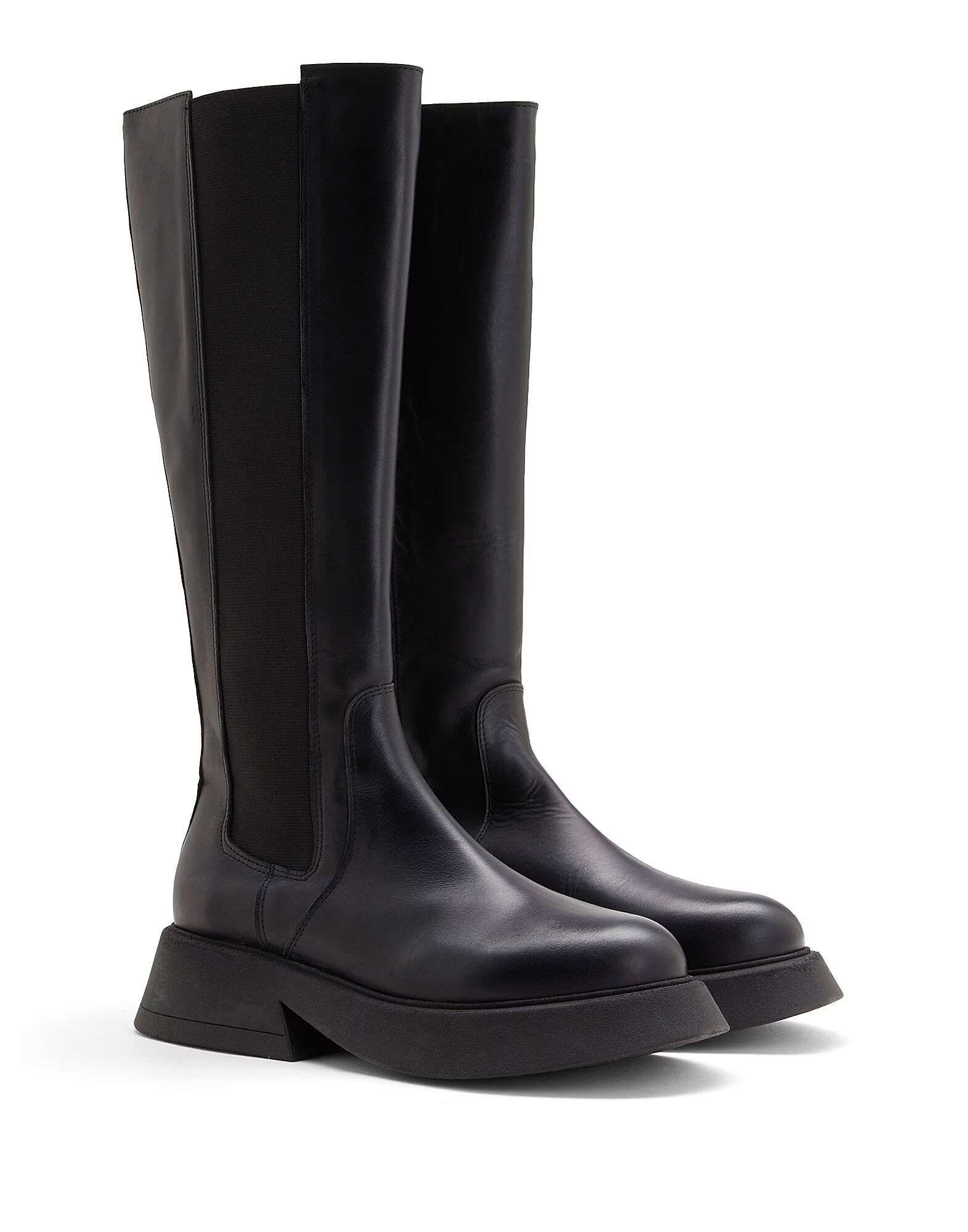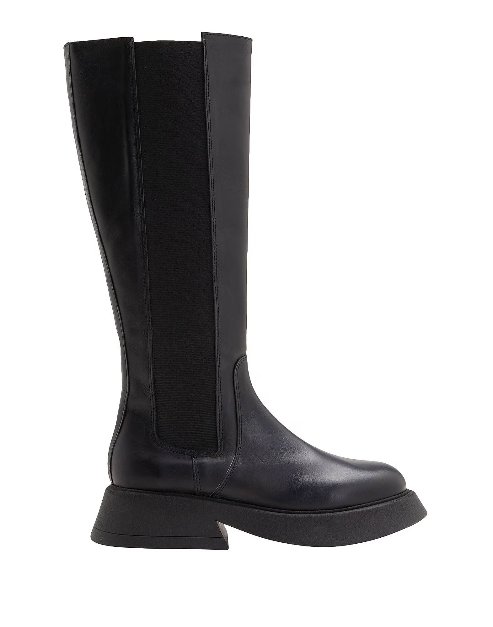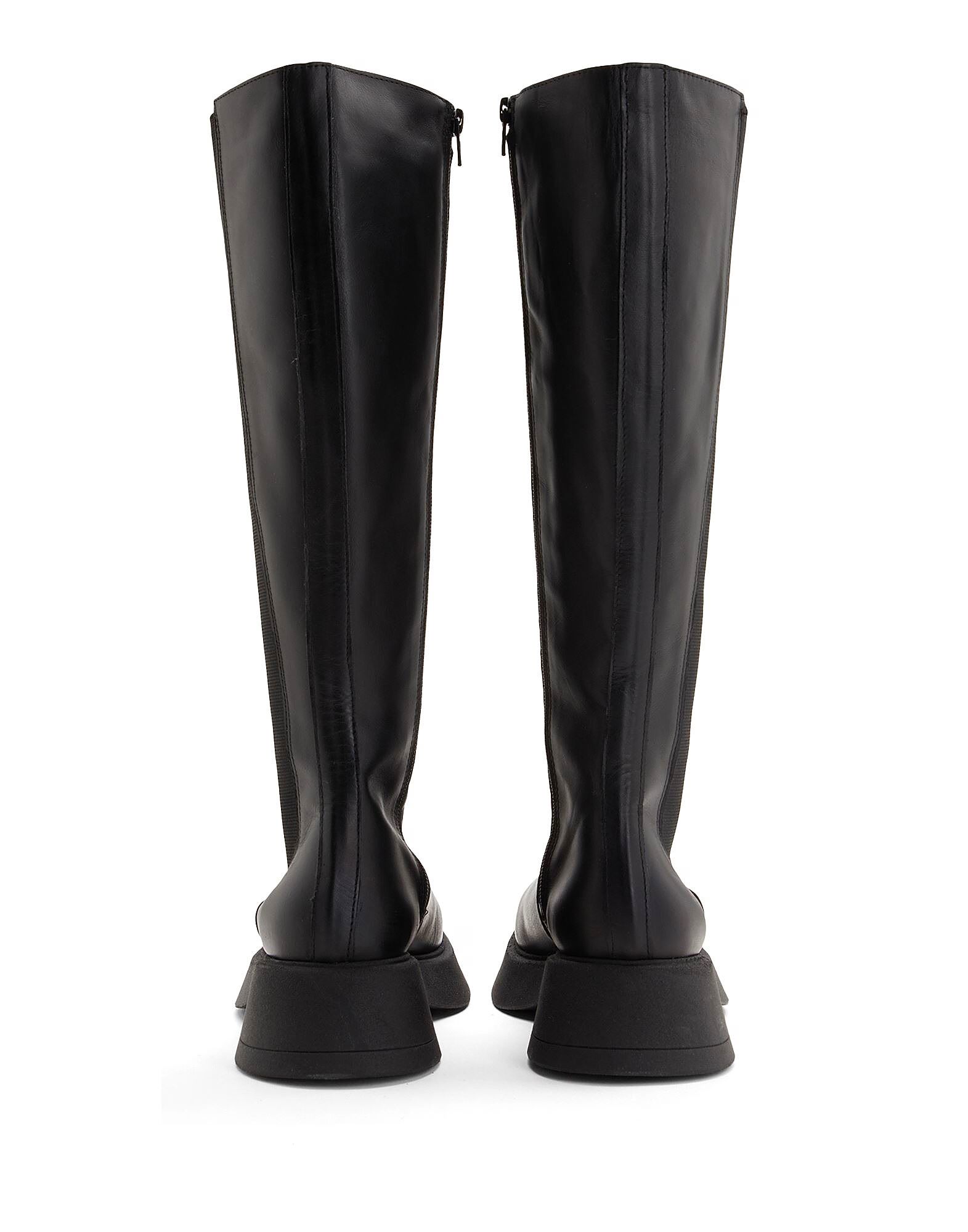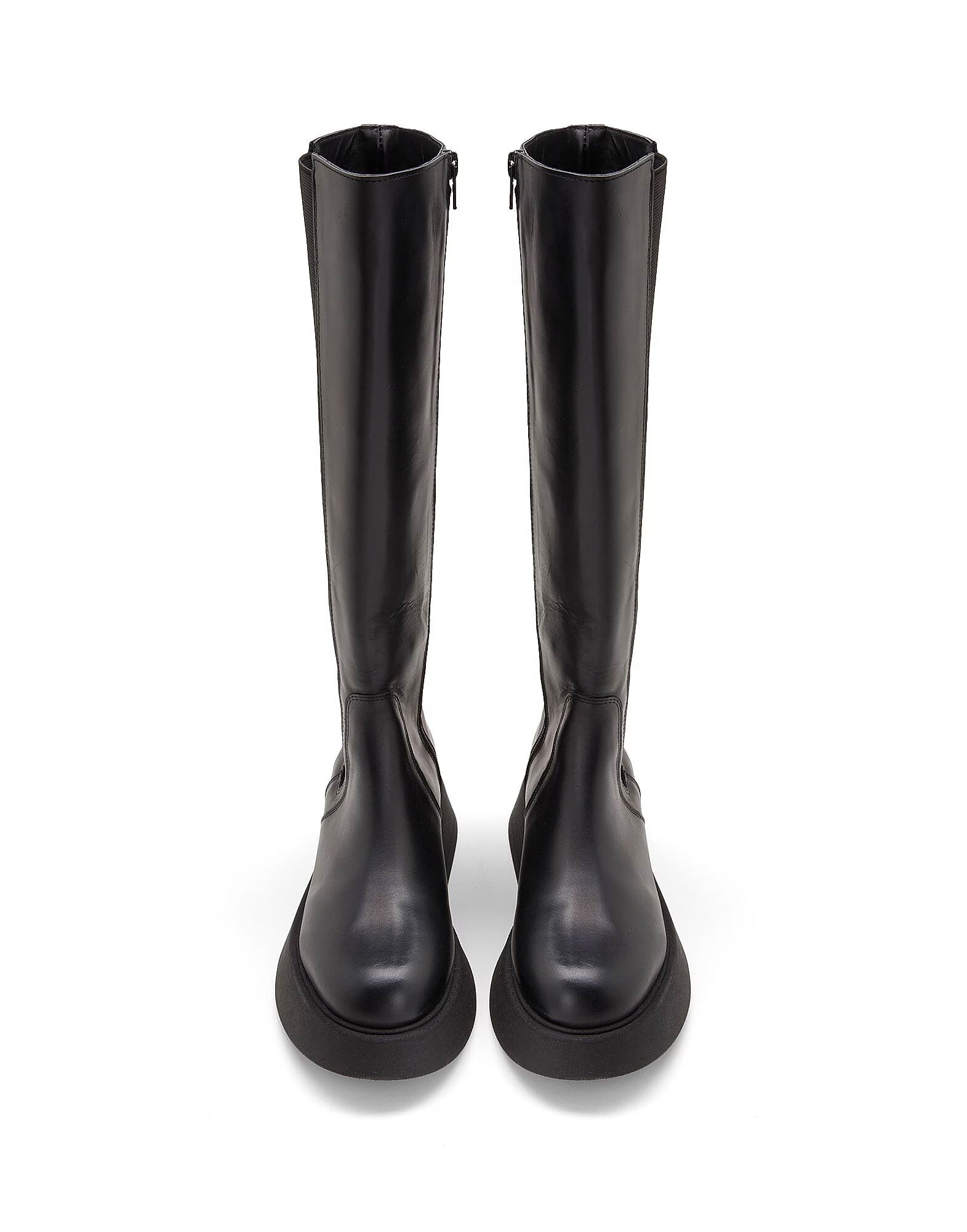 Эти ботинки, изготовленные в Италии из натуральной кожи, выделяются круглым носком и голенищем чуть ниже колена. Однотонный дизайн, резиновая подошва и застежка-молния.