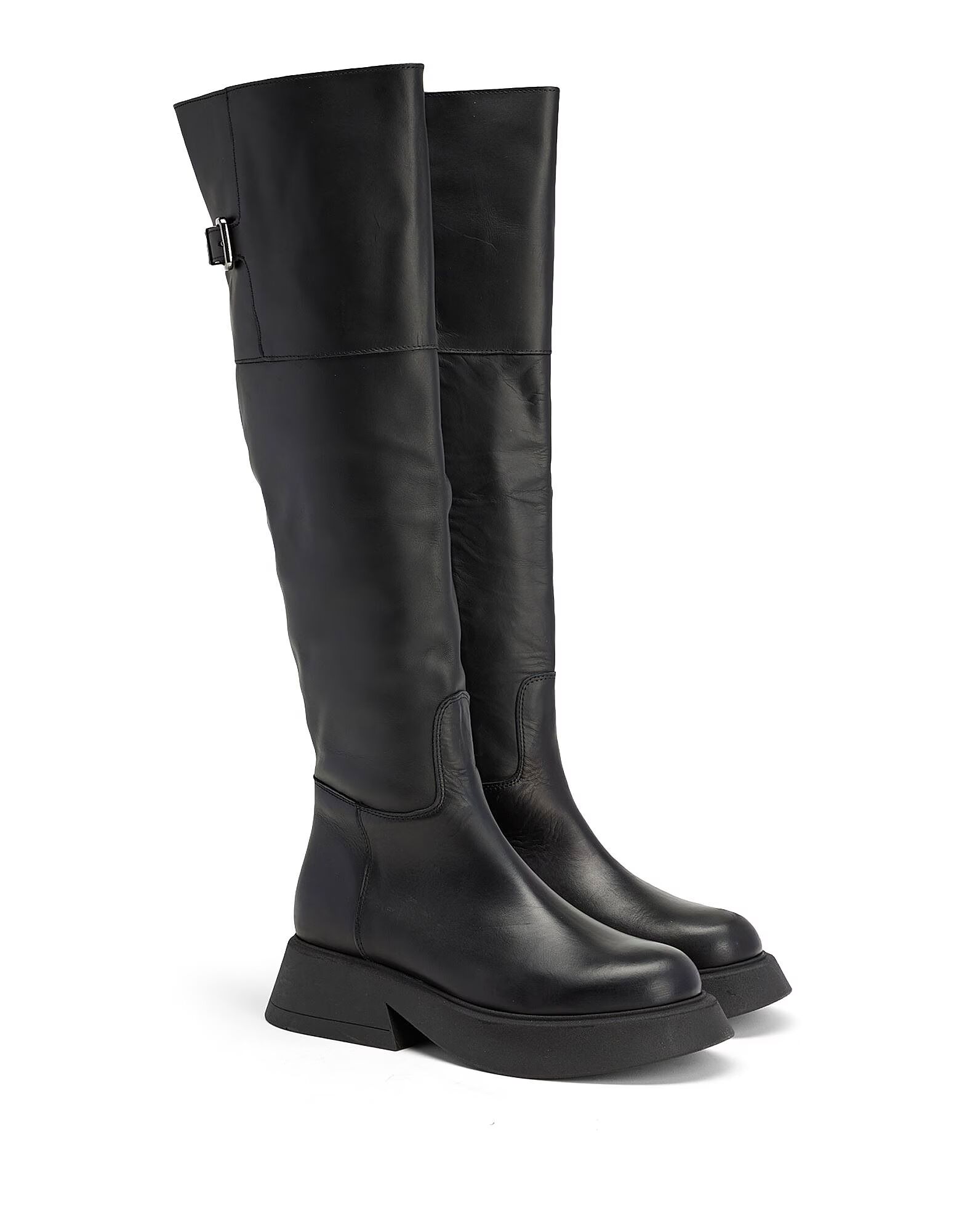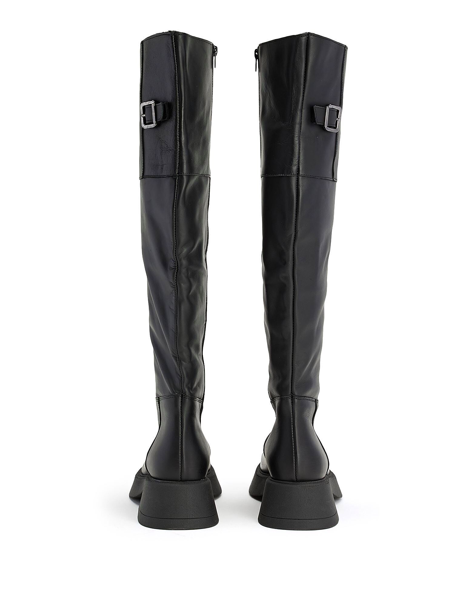 Эти ботинки отличаются ремешком с пряжкой по всей ноге. Сделаны в Италии из однотонной кожи, имеют боковую молнию и массивную резиновую подошву в тон.