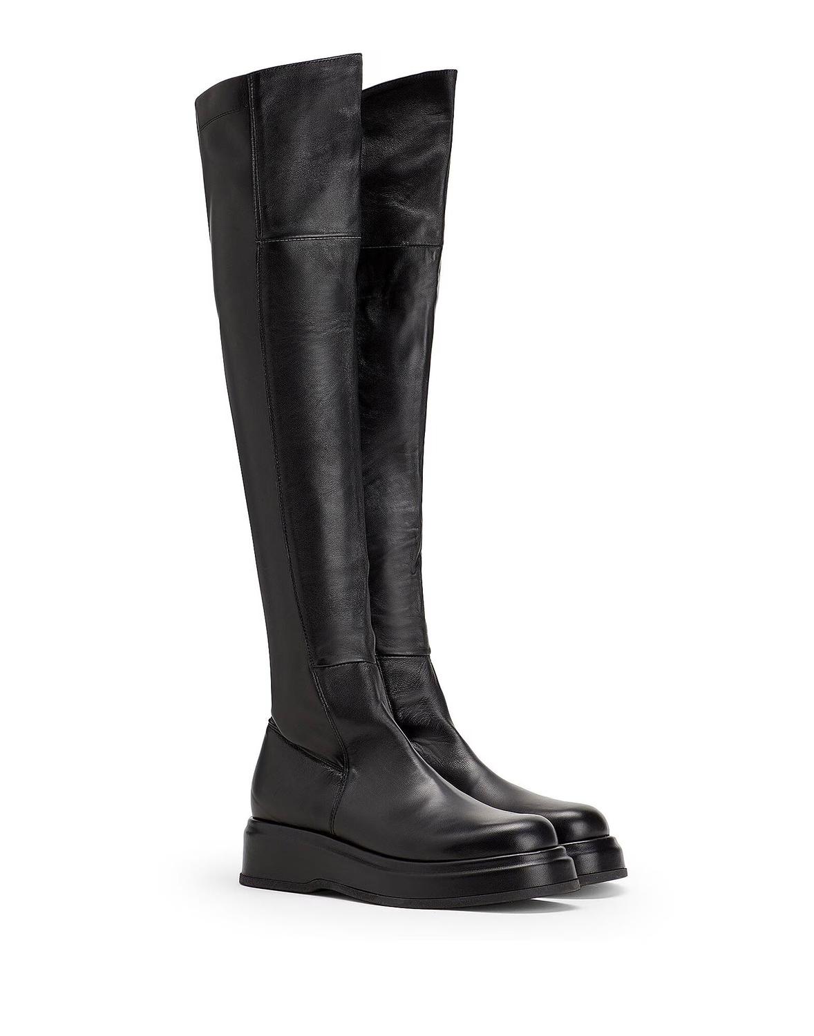 Эти однотонные кожаные ботинки отличаются круглым носком и толстой резиновой подошвой. Сделаны в Италии, имеют посадку выше колена.