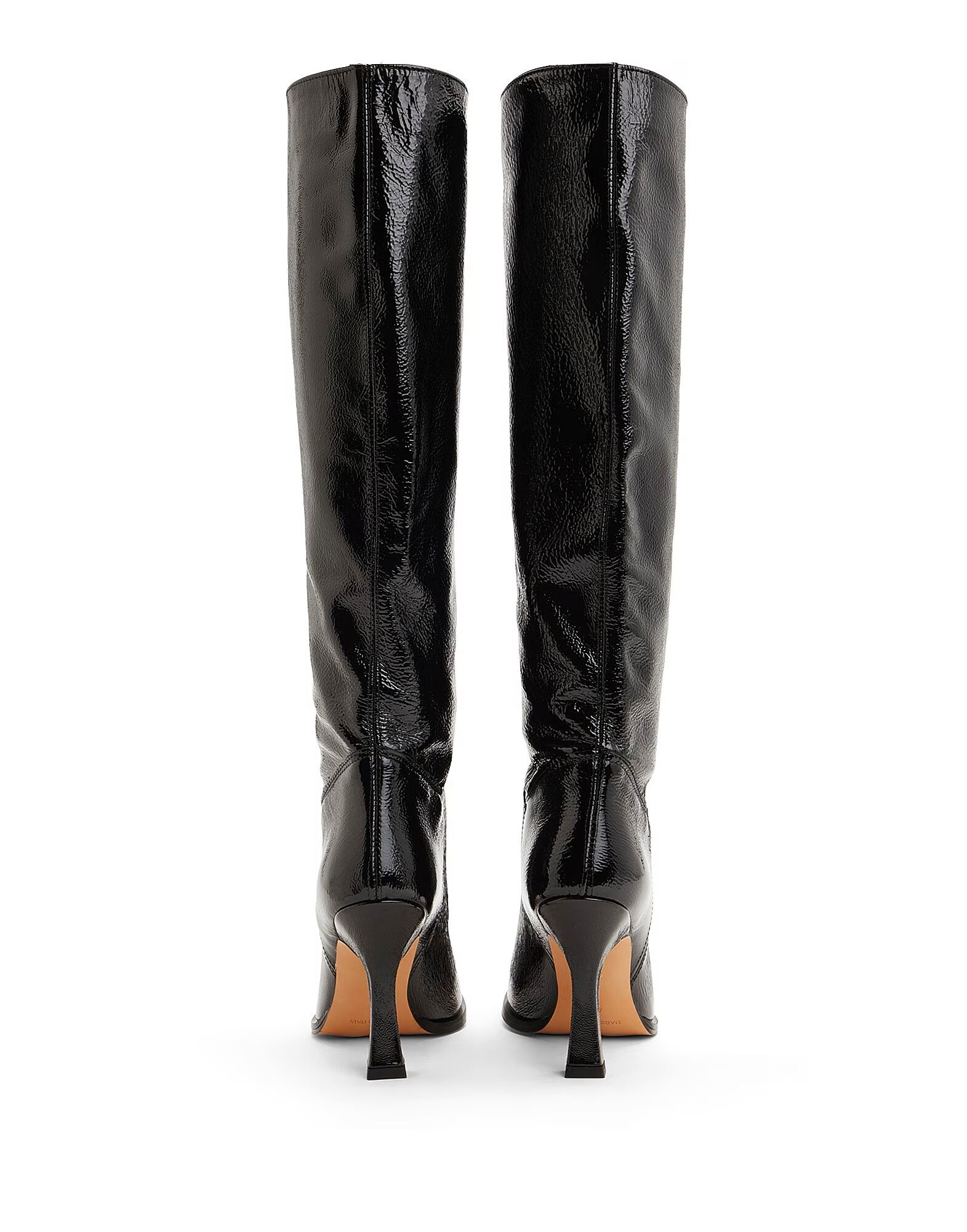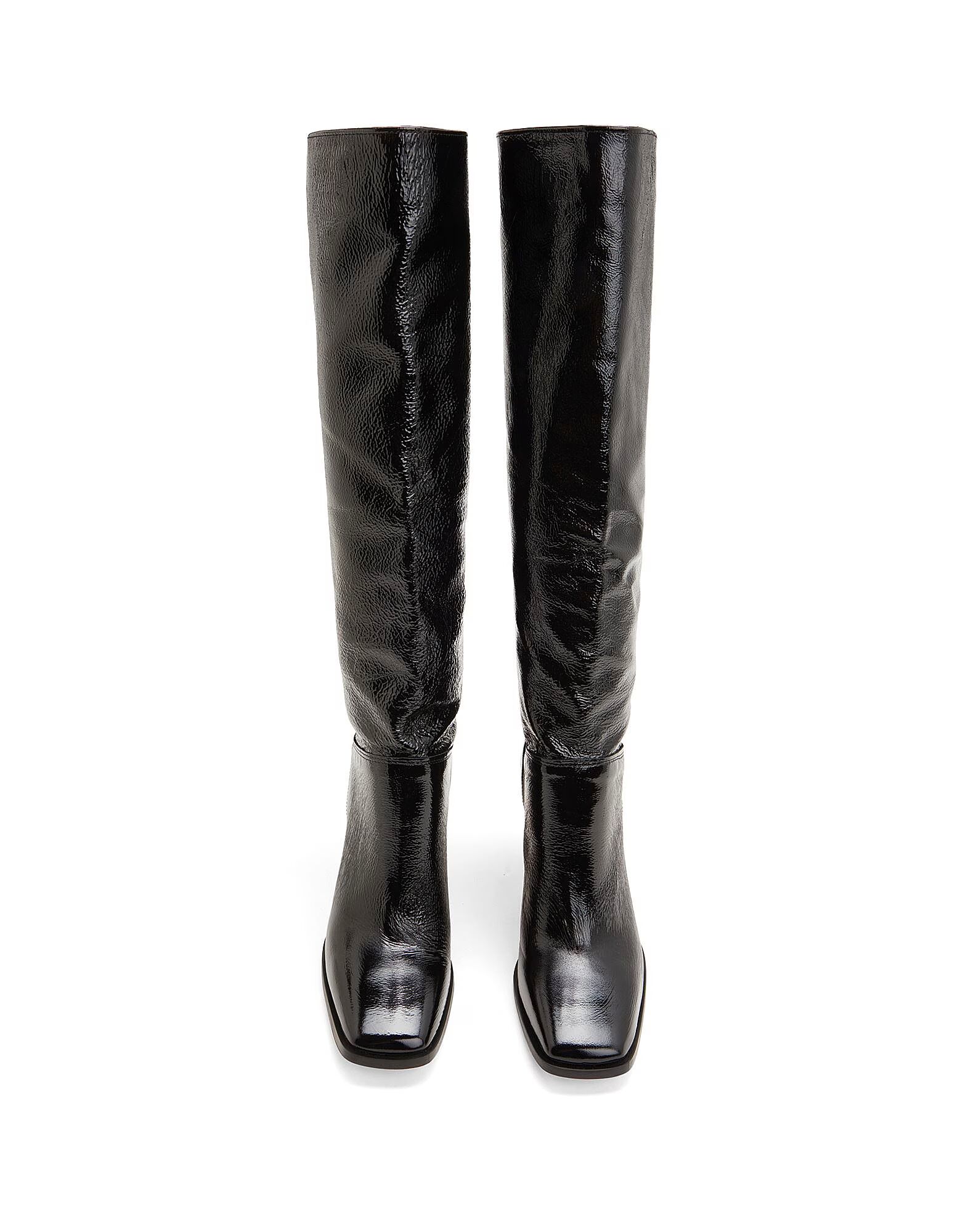 • Лакированная отделка - отличительная черта этих ботинок из натуральной кожи с квадратным носком и длиной ниже колена. Сделанные в Италии