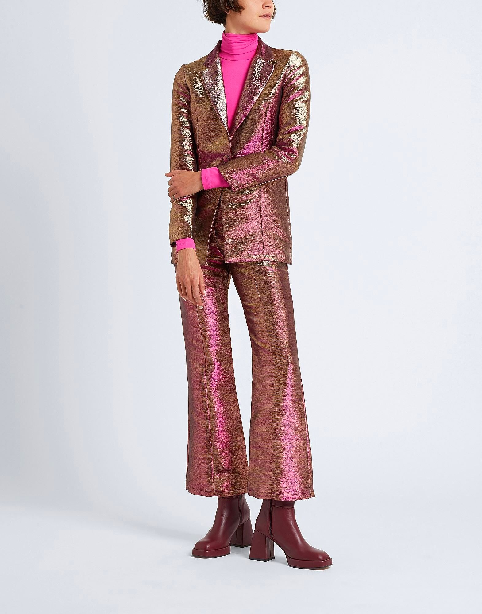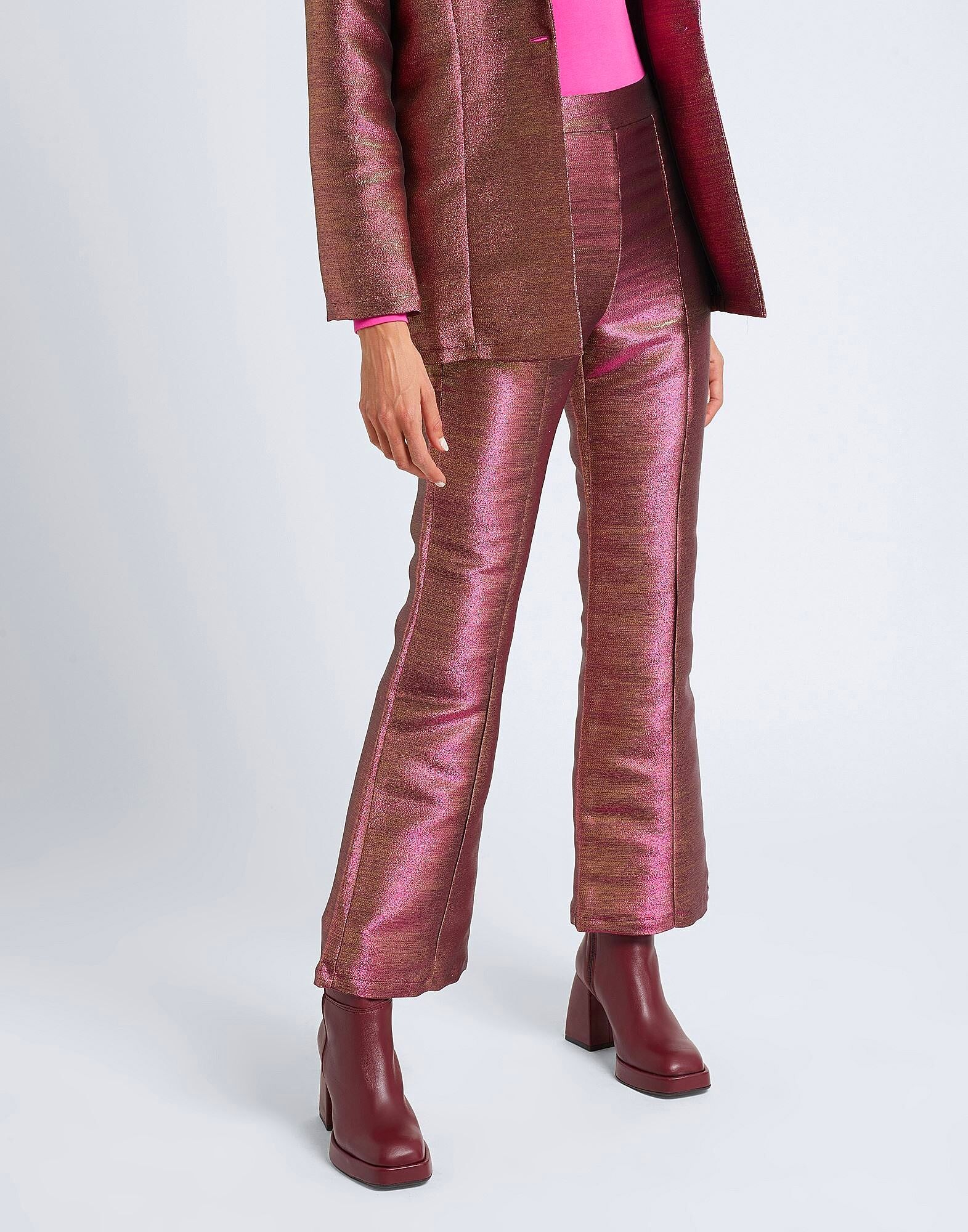 Эти парусиновые брюки, сделанные в Италии, с эластичной талией и расклешенными брючинами. Уникальный дизайн ткани с оригинальным эффектом ламе, застежка на молнию позволяет носить их с подходящей курткой из коллекции 8 by YOOX, создавая костюм. На модели представлен итальянский размер S/40. .