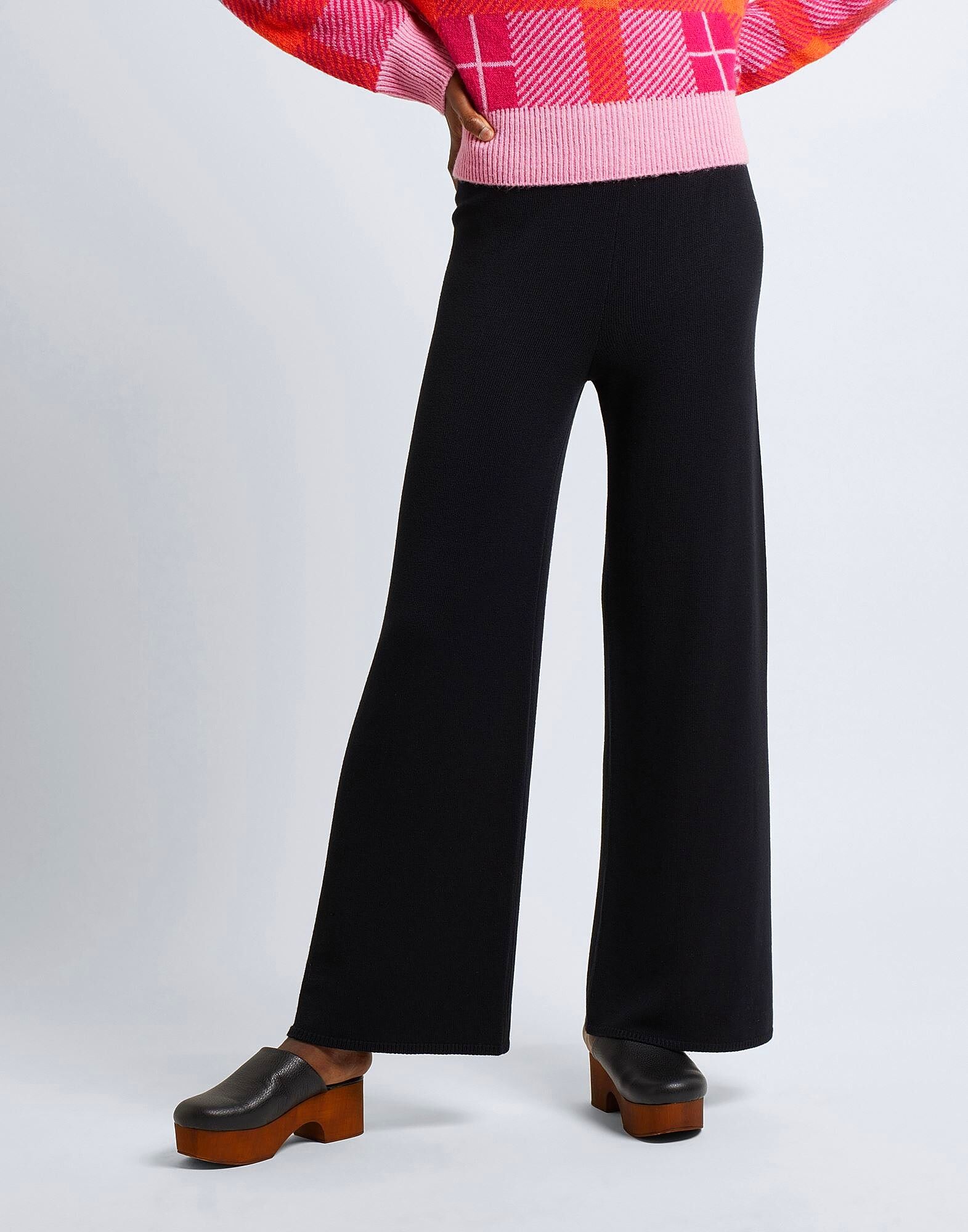 Эти трикотажные брюки с широкими штанинами и высокой талией на резинке. Сделаны в Италии и доступны в однотонном цвете. Они отличаются лёгкостью ткани, что делает их идеальными для межсезонья. На модели представлен итальянский размер S/40.