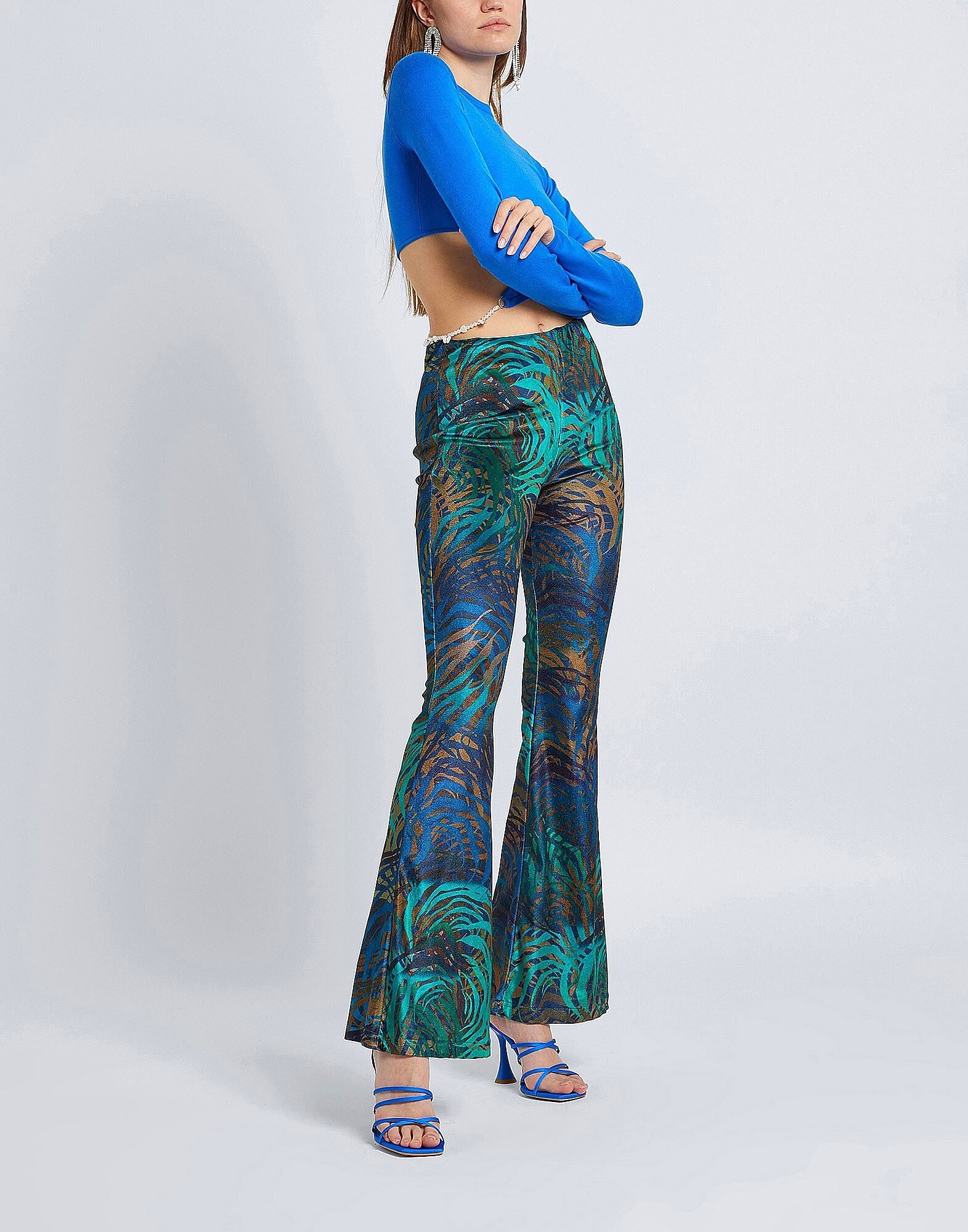 Эти брюки с принтом из коллекции 8 by YOOX, выполненные из мягкого бархата, имеют расклешенный силуэт в ретро-стиле. Высокая талия дополнена эластичной вставкой для комфорта и гибкости. На модели представлен итальянский размер S/40.
