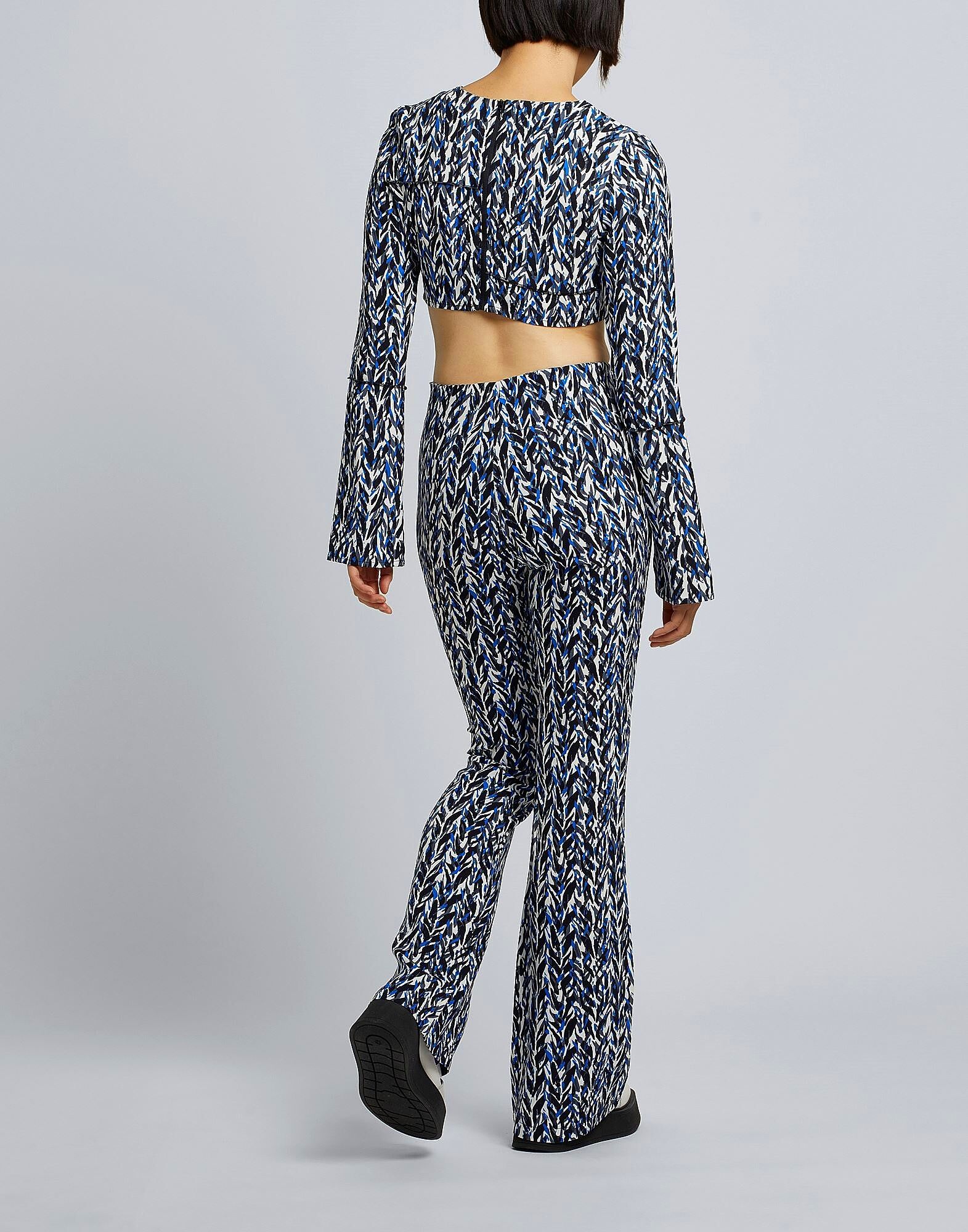 Эти брюки, изготовленные в Италии, с завышенной талией и расклешенными брючинами, украшены разноцветным узором, создающим яркий визуальный эффект. 8 by YOOX предлагает их в креповой ткани с застежкой-молнией. На модели представлен итальянский размер S/40.
