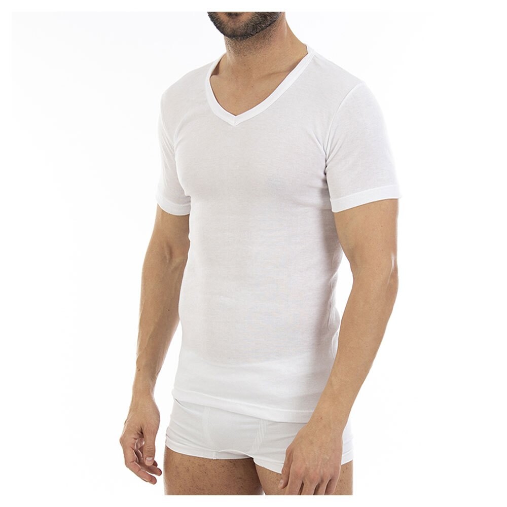 Мужская майка с V-образным вырезом и короткими рукавами.