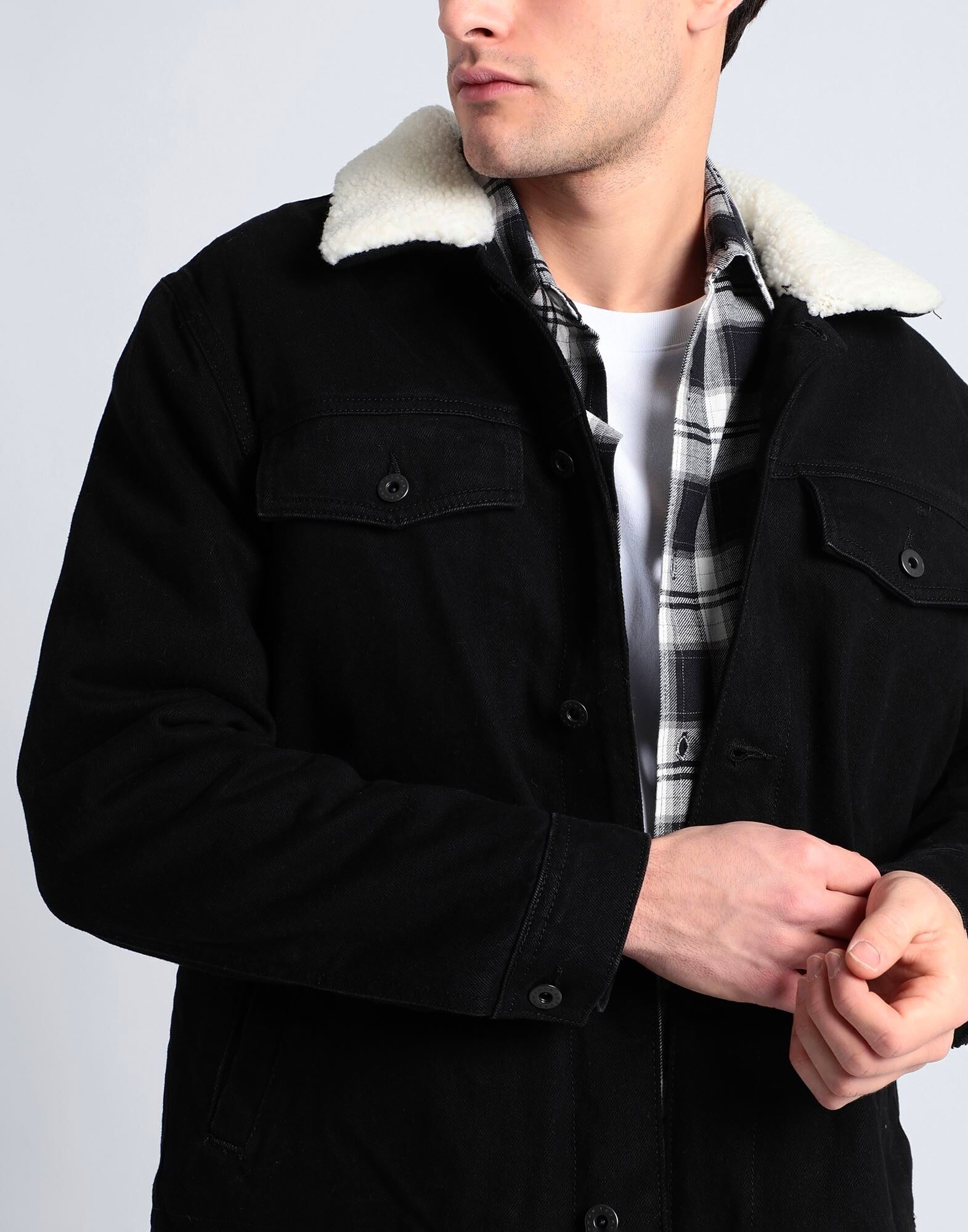 Джинсовая куртка Topman Borg Collar Denim Jacket Topman, черный