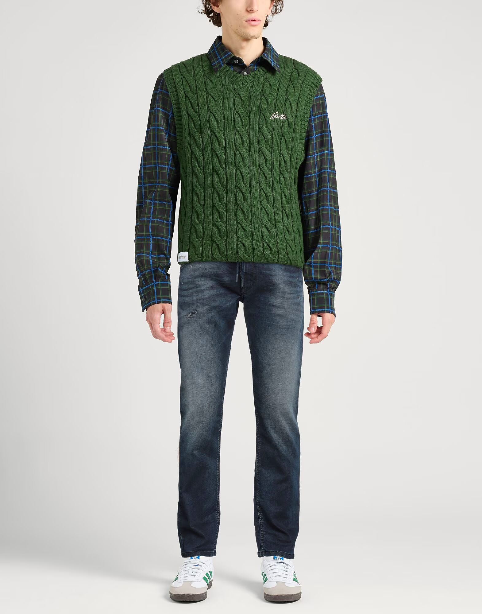 Состав: 52% лиоцелл, 45% хлопок, 3% эластан, коровья кожа
