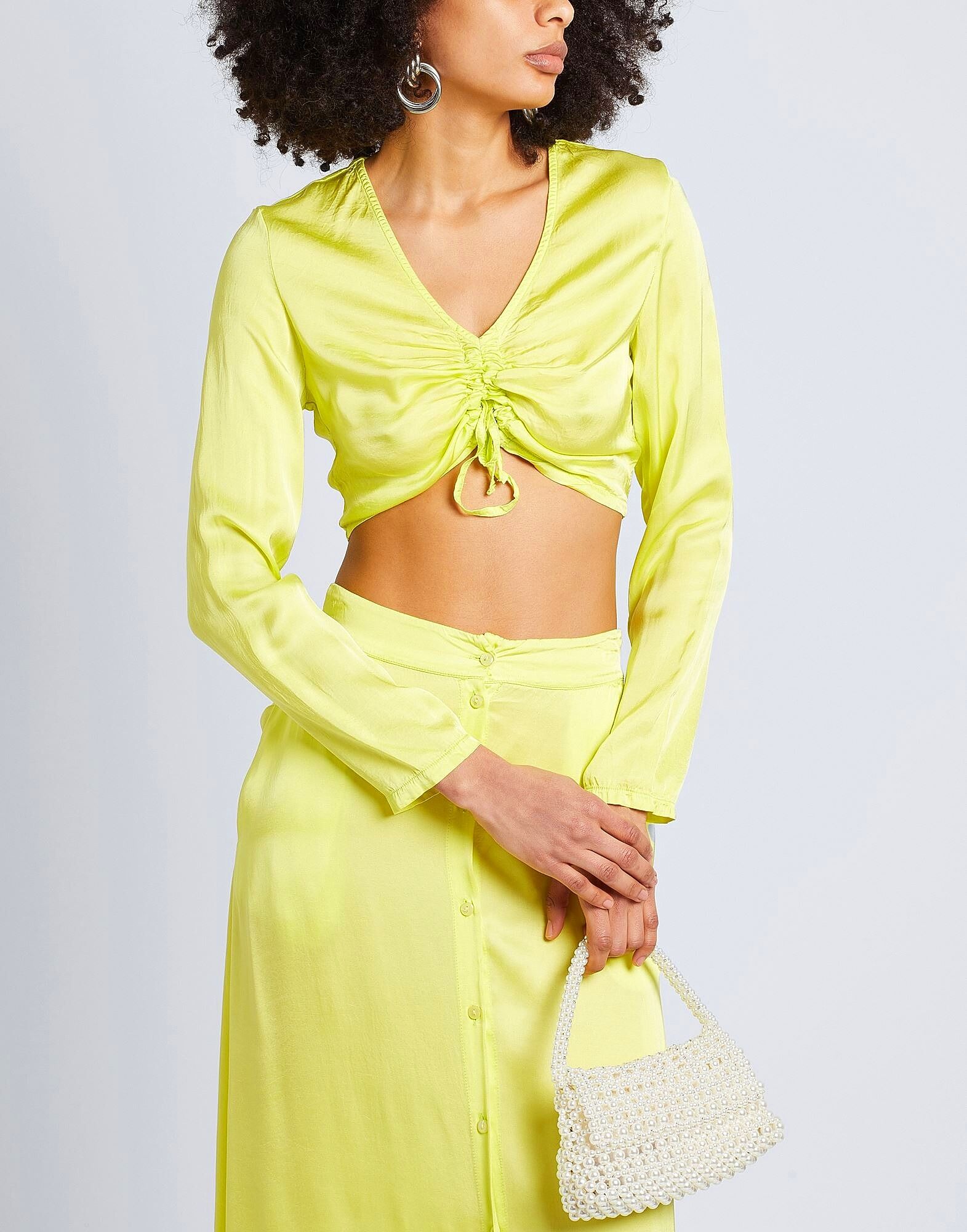 Эта однотонная атласная блузка с V-образным вырезом, изготовленная в Италии, застёгивается спереди, образуя оригинальный рюш. Укороченный крой и эластичные манжеты идеально сочетаются с юбкой из коллекции 8 by YOOX. На модели размер S/40 (итальянский).