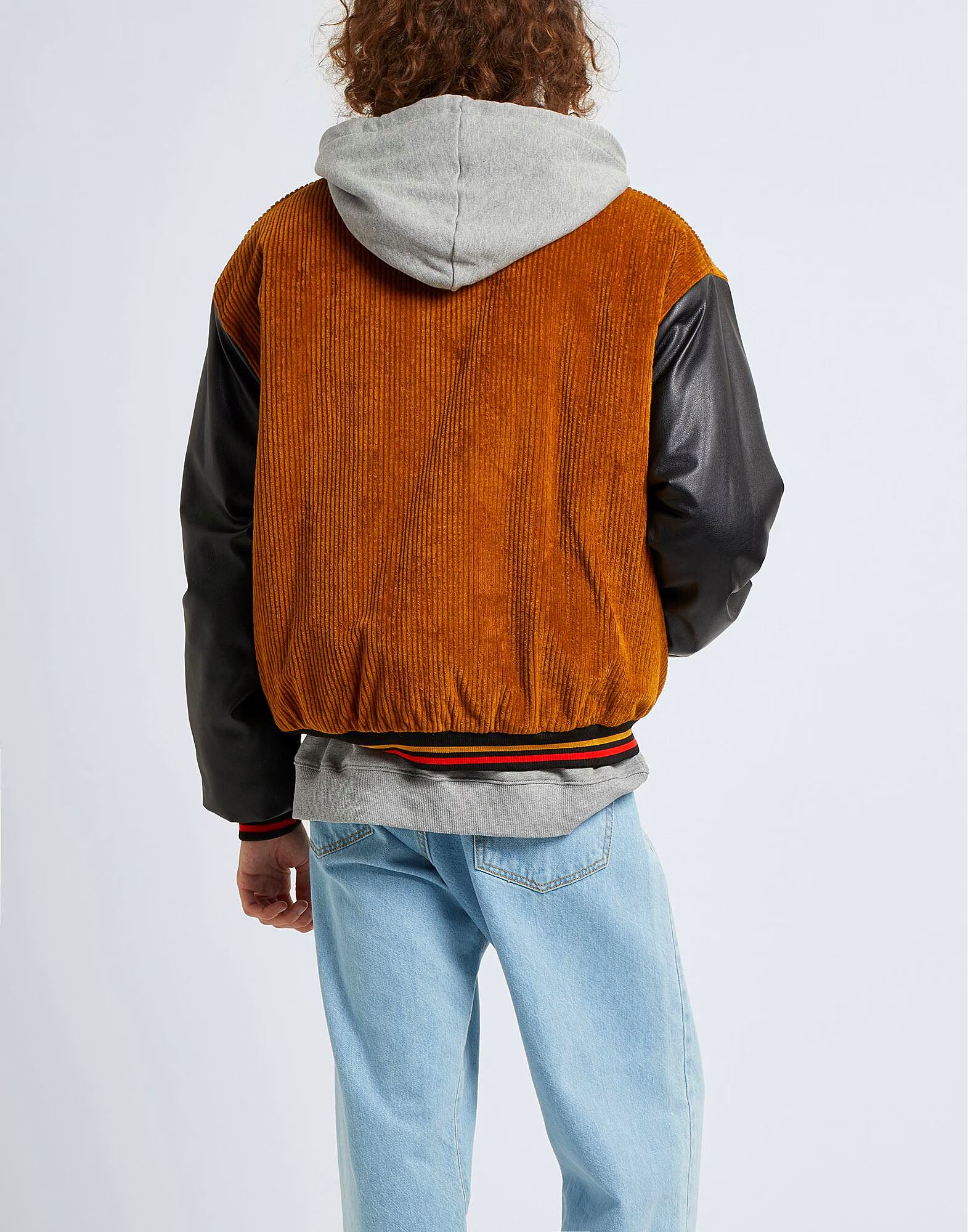 Эта куртка-бомбер, изготовленная в Италии, отличается чрезвычайно практичным кроем: круглым вырезом, застёжкой-молнией спереди и боковыми карманами. Куртка выполнена из вельвета с длинными рукавами из ткани с покрытием. Внутренняя подкладка обеспечивает лучшую теплоизоляцию, а цветная ребристая отделка на подоле и манжетах выполнена из цветной ткани. На модели размер M/48 (итальянский).