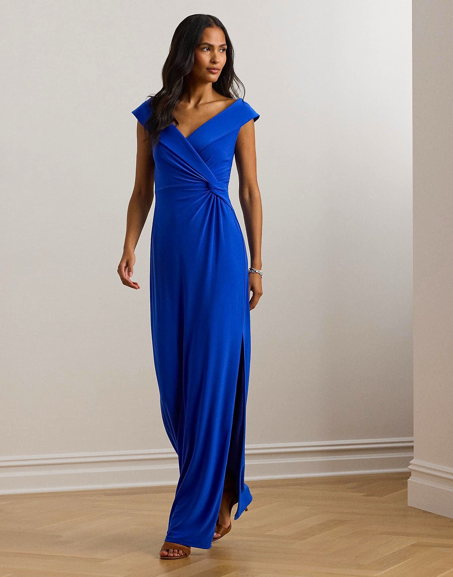 Макси платье Jersey Off-The-Shoulder Gown Ralph Lauren, ярко-синий