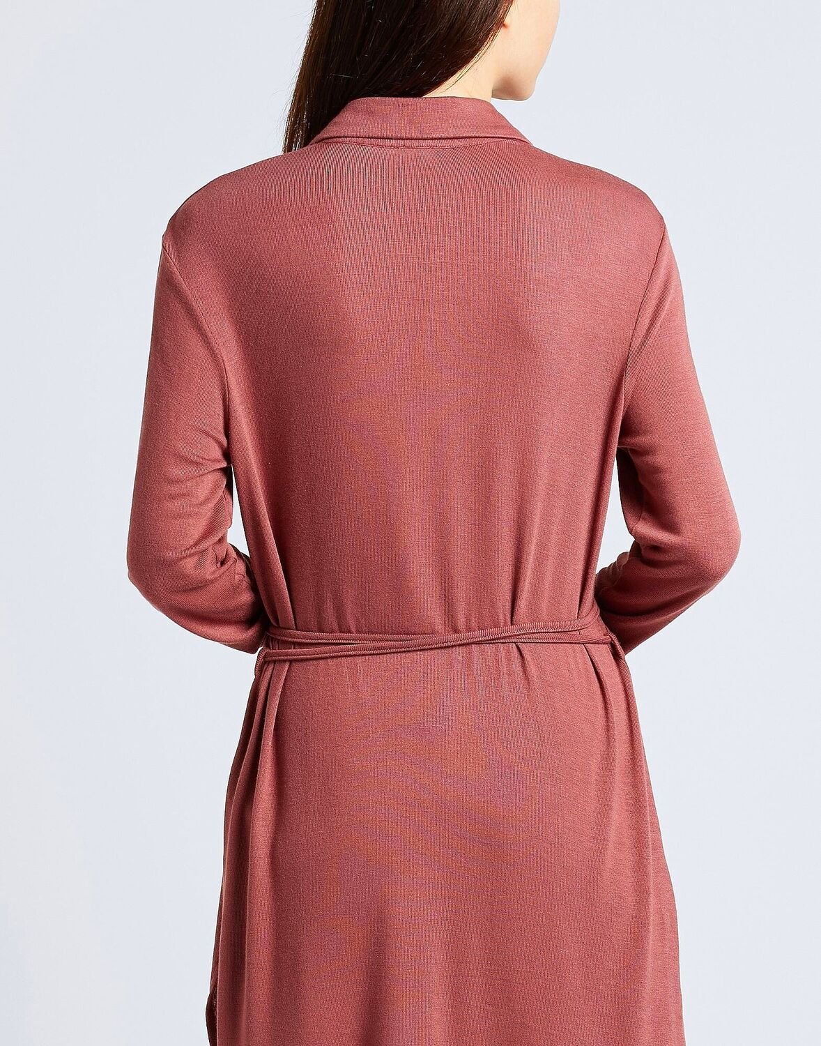 Оригинальная однотонная рубашка, сделанная в Италии, с классическим воротником, двумя нагрудными карманами и боковыми разрезами по низу. Изделие выполнено из лёгкого вискозного трикотажа, создающего драпировку и струящийся эффект. Длинные рукава, застёжка спереди и на манжетах на пуговицах, пояс в тон, завязывающийся на талии. Доступны другие цвета. Рост модели: 180 см, размер S/40 (итальянский).