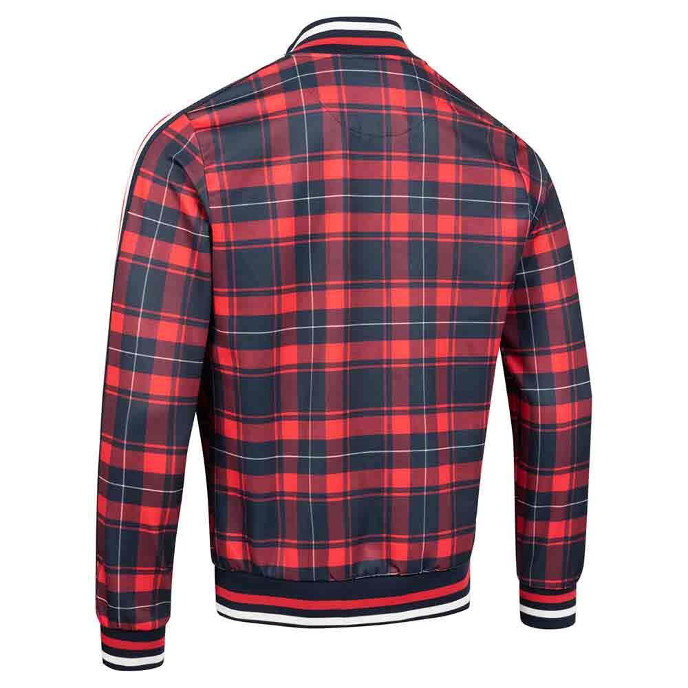Спортивный костюм со сплошным принтом, состоящий из куртки и брюк. Обе модели имеют небольшой логотип в виде трехмерного резинового принта на груди / левом бедре соответственно и практичные карманы на молнии. Дополнительная информация: пришитые ленты и полосатые манжеты в рубчик.