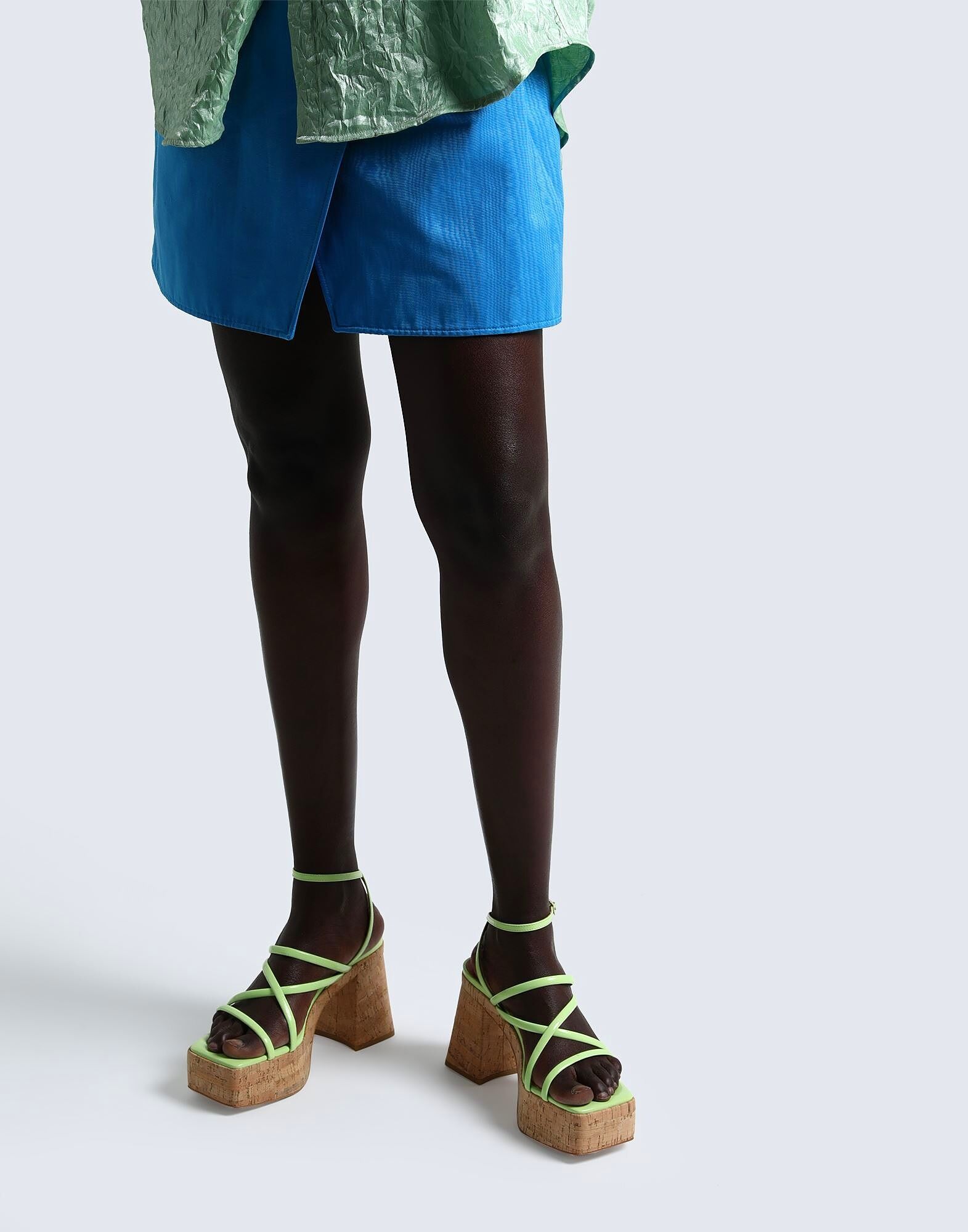 8 by YOOX дополняет летний гардероб этими босоножками с невероятно женственным силуэтом. Они украшены тонкими перекрещивающимися ремешками, застегивающимися на пряжке на щиколотке. Модель с квадратным носком дополнена пробковым каблуком и платформой, а также защитной резиновой подошвой. Кожа для этой модели произведена на сертифицированном кожевенном заводе, который стремится снизить воздействие на окружающую среду на каждом этапе производства.