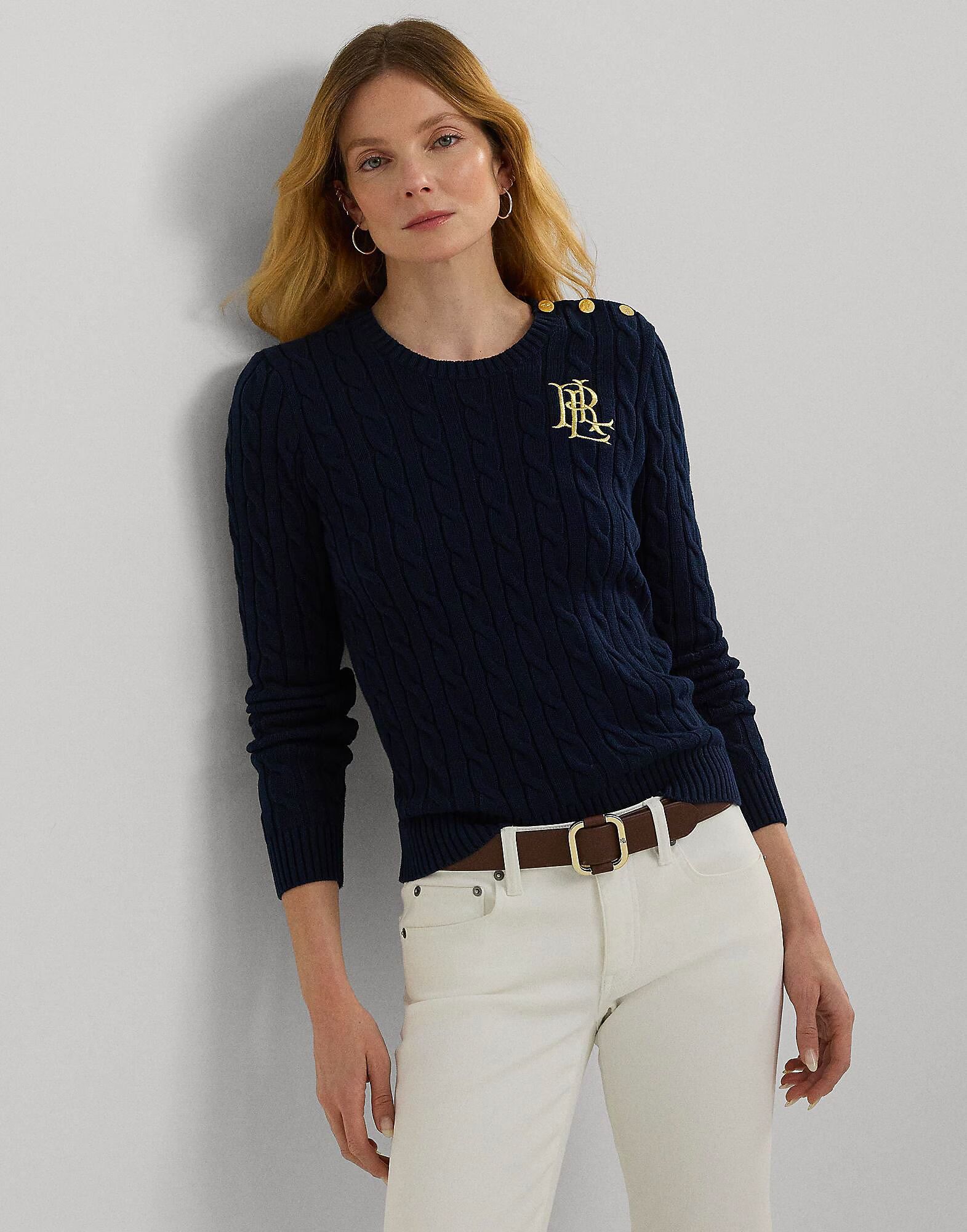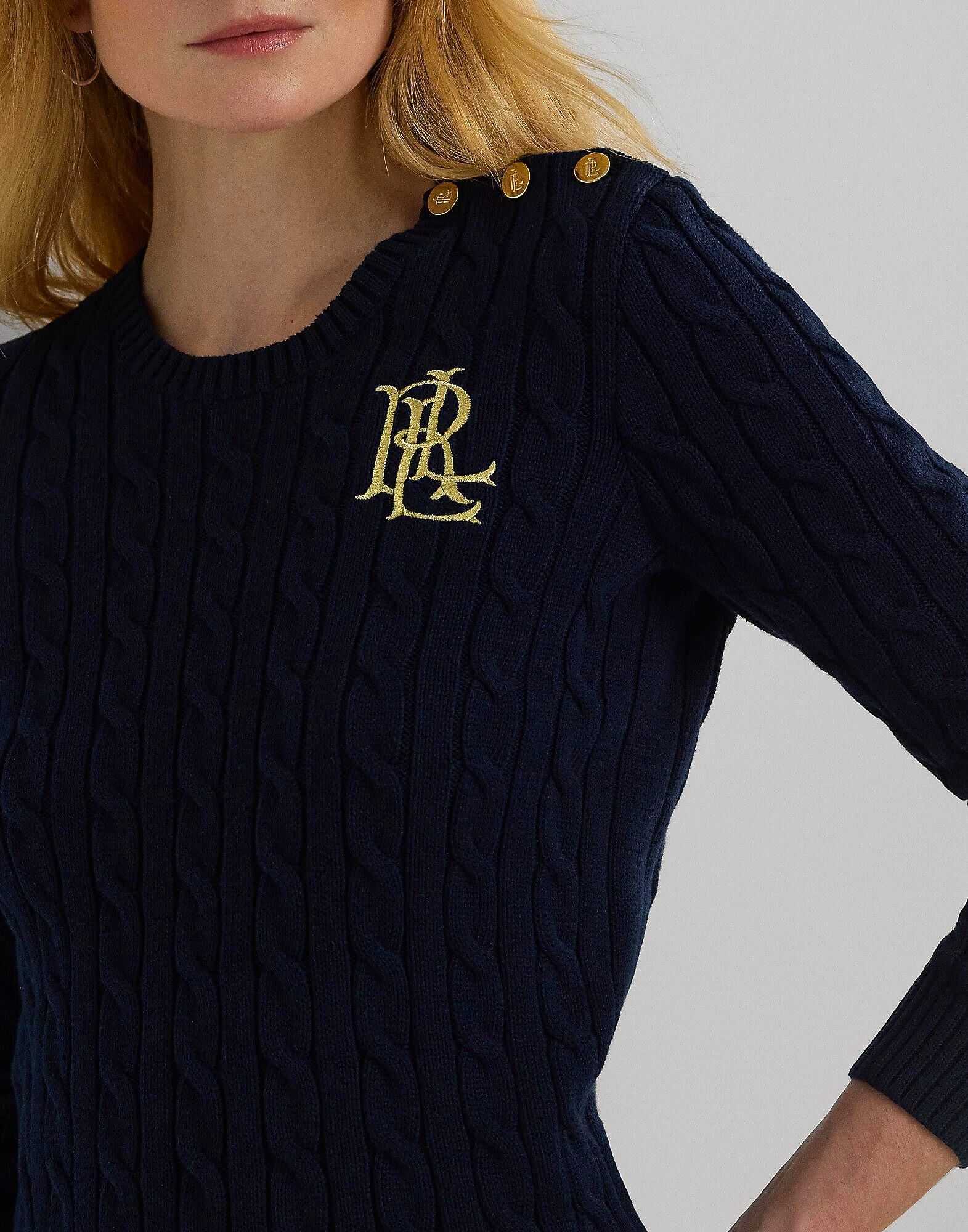 Свитер Button-Trim Cable-Knit Cotton Sweater Ralph Lauren, темно-синий