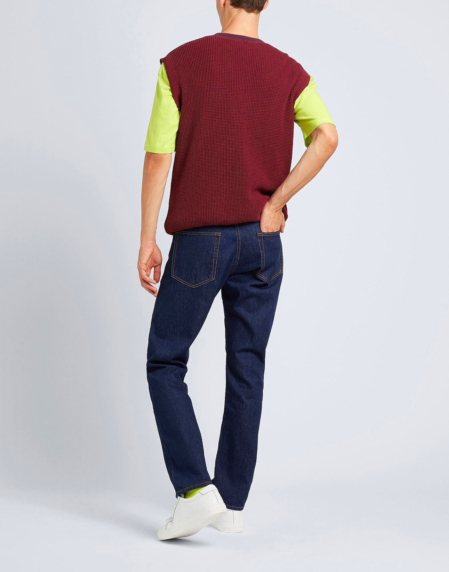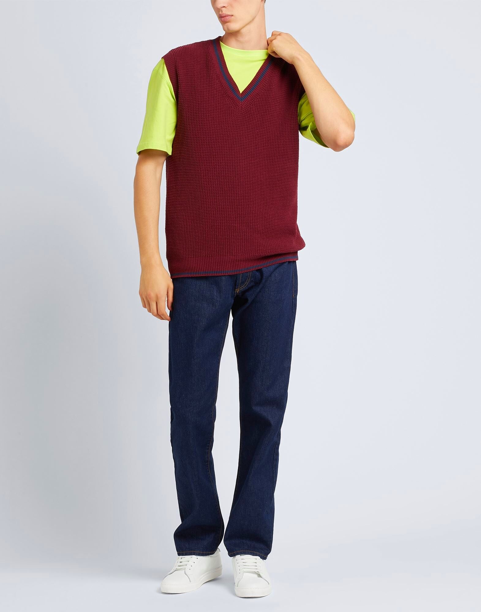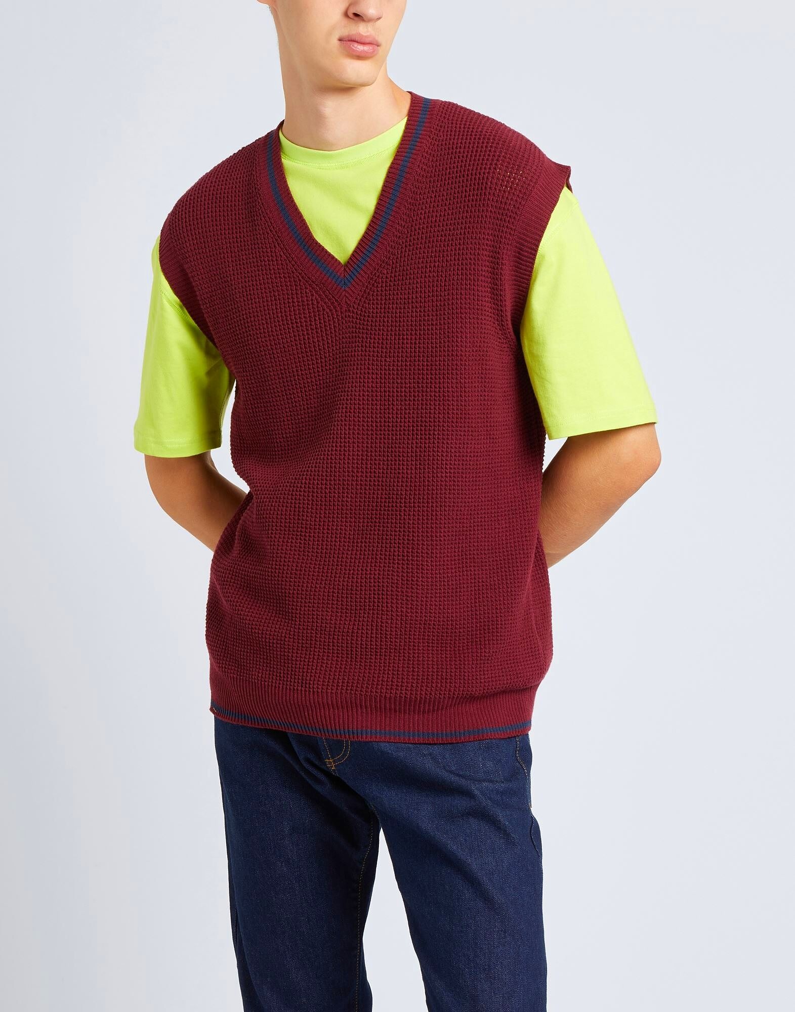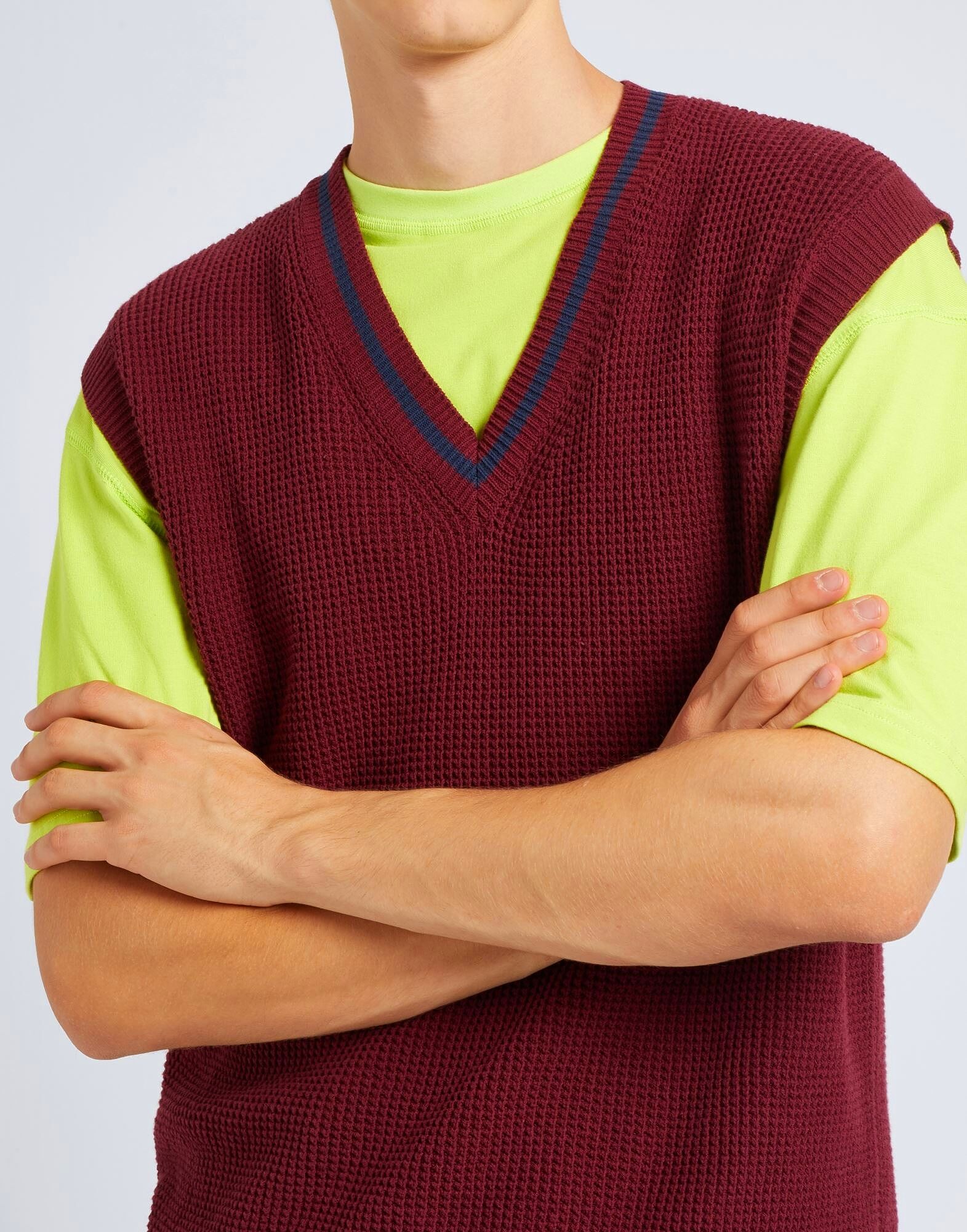 Этот жилет-свитер, изготовленный в Италии из смеси хлопка и переработанного хлопка, имеет безрукавный крой и V-образный вырез. Он дополнен двумя контрастными полосками на подоле и воротнике, а лёгкий крой делает его особенно подходящим для межсезонья. На модели представлен итальянский размер M/48.