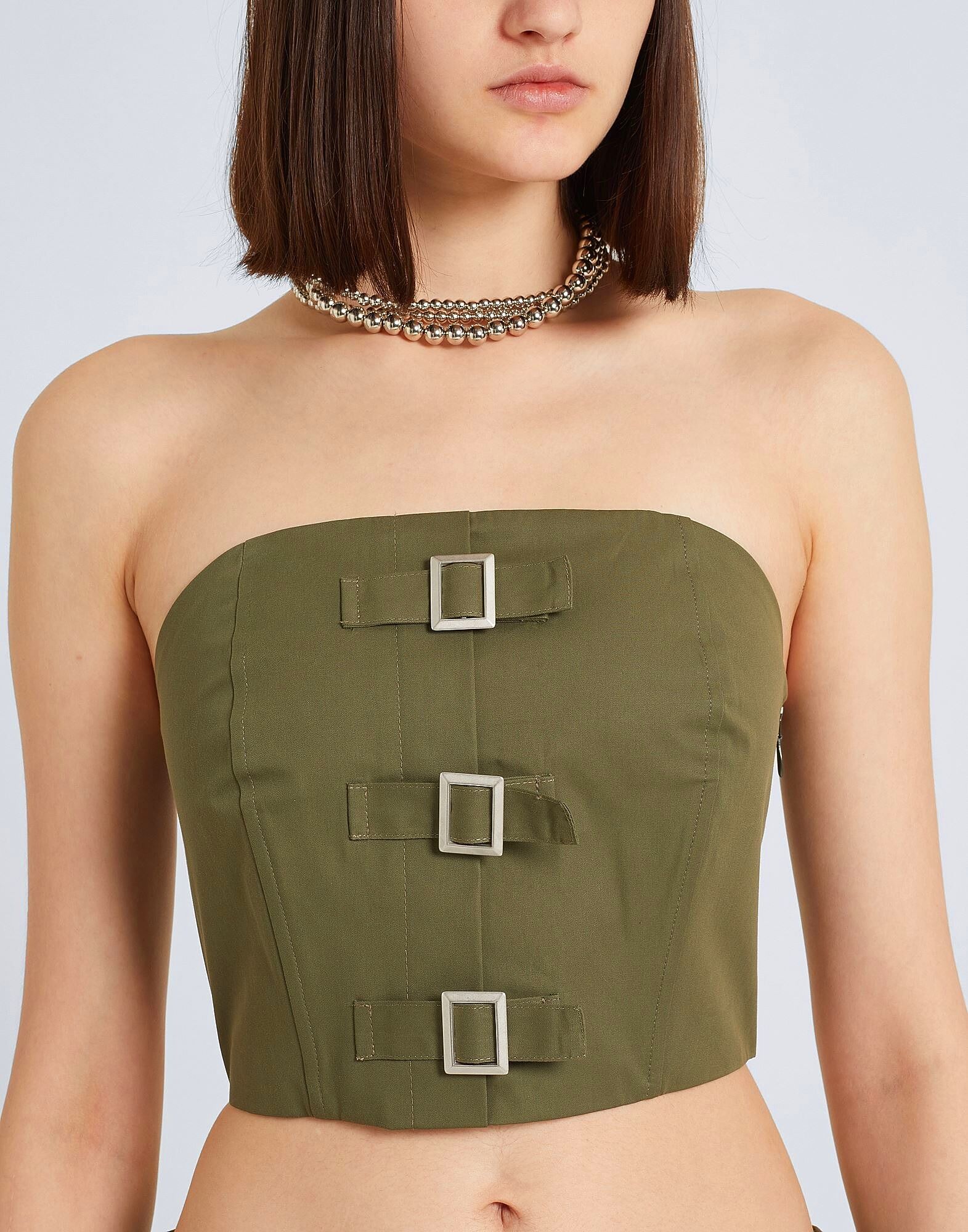 Топ Bandeau Bustier W/ Front Buckles 8 By Yoox, зеленый