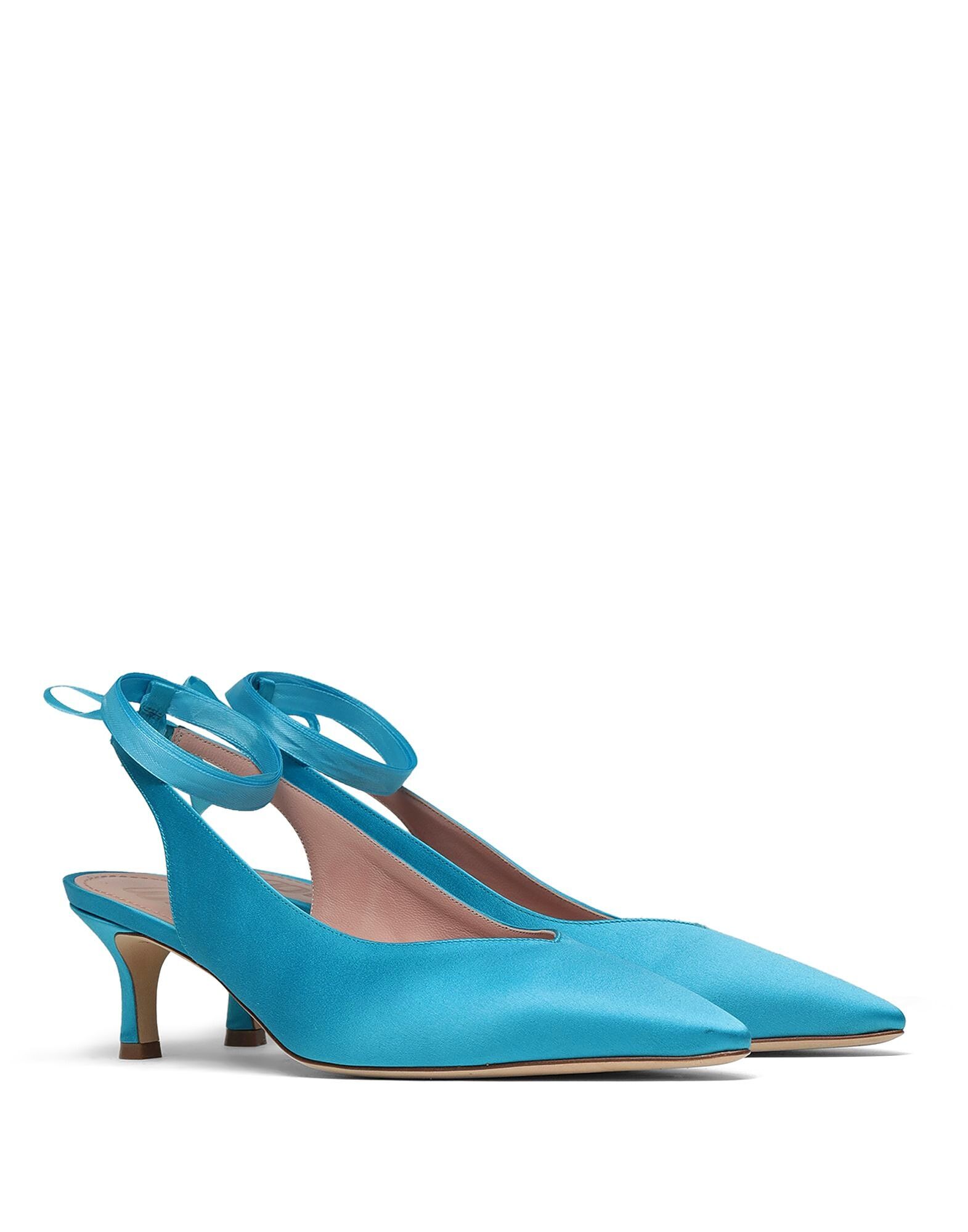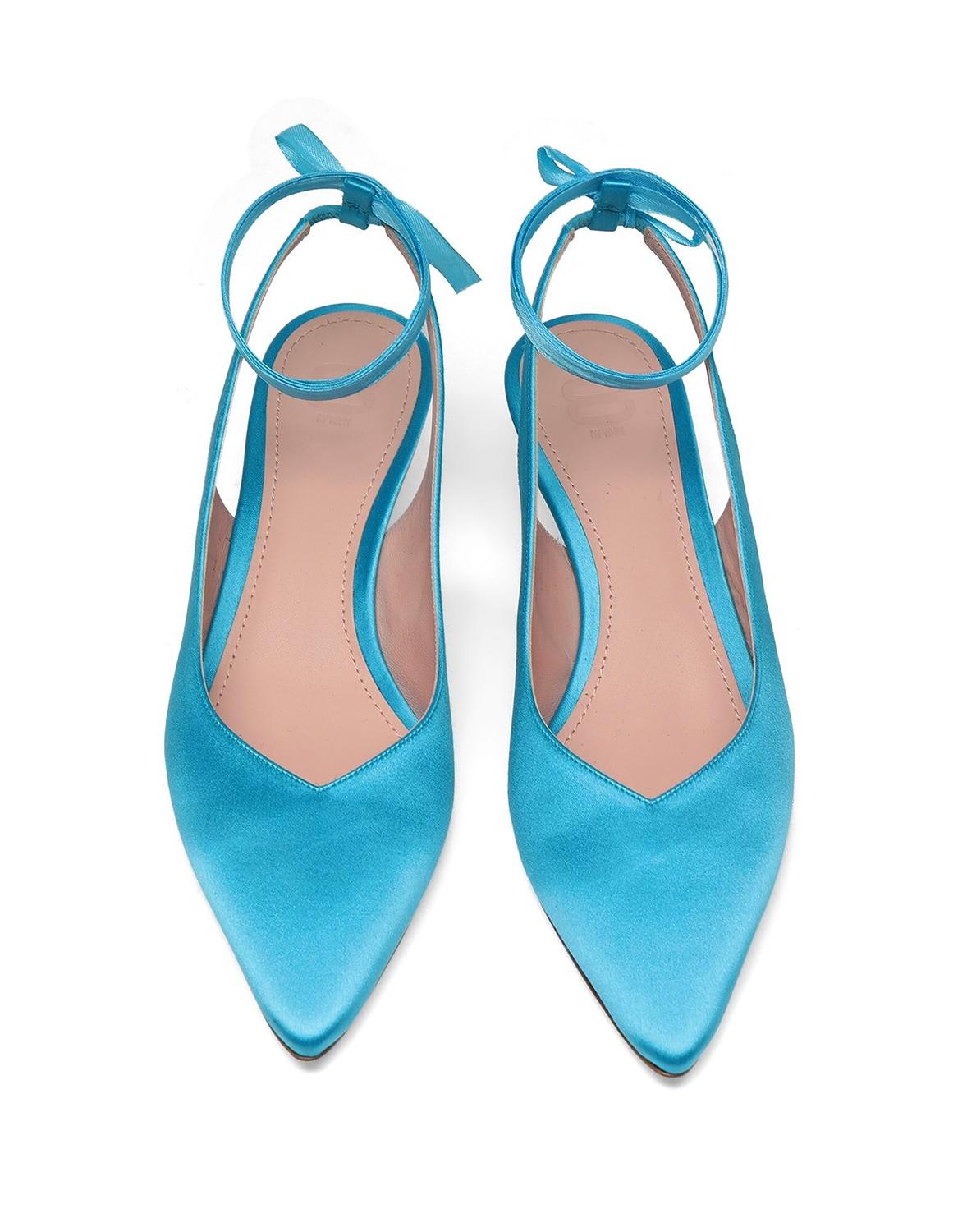 • Носите эти атласные туфли на невысоком каблуке с брюками-сигаретами днём и шикарным платьем миди вечером. Сделаны в Италии