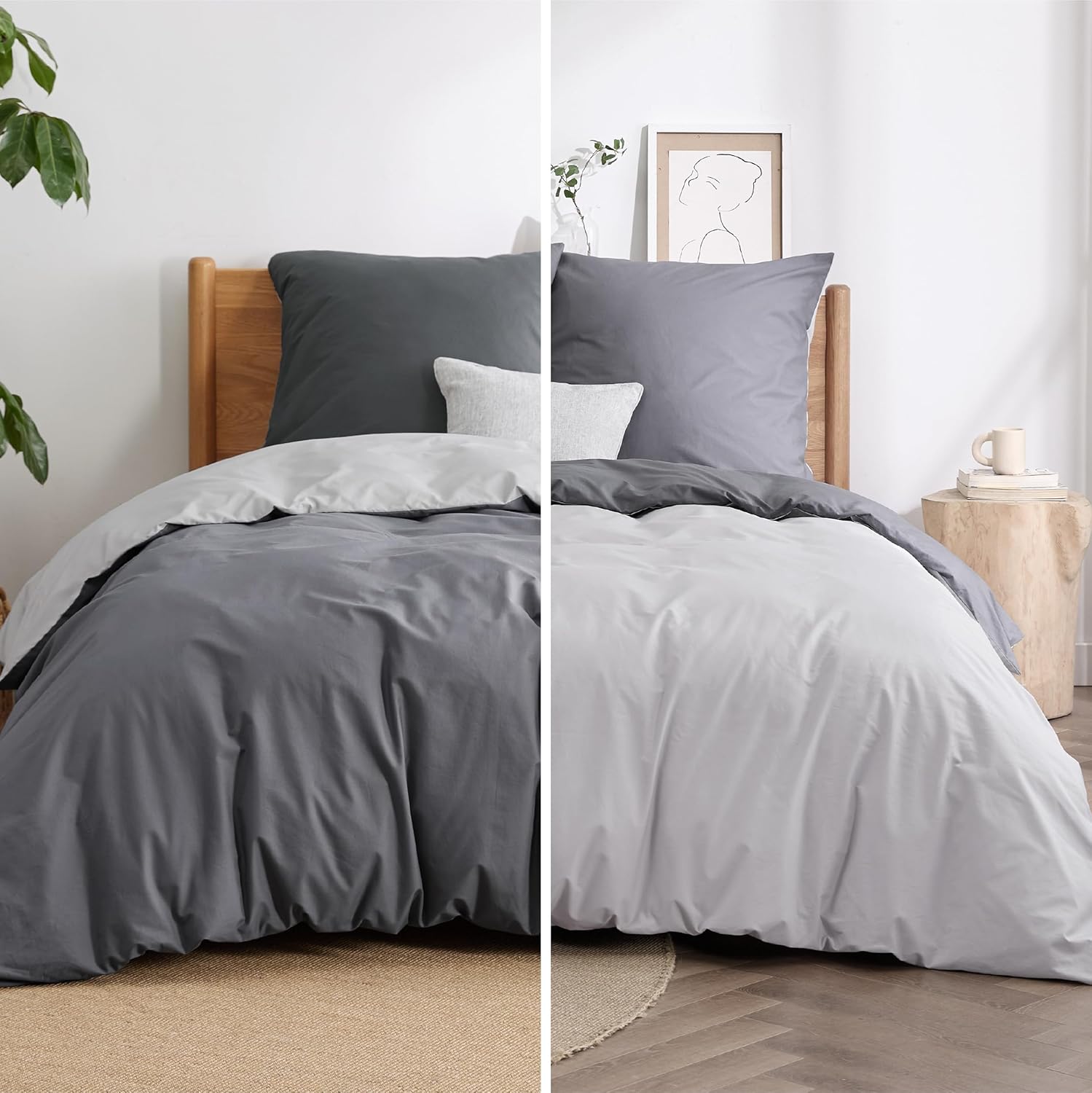Двусторонний дизайн (REVERSIBLE DESIGN): Этот двусторонний пододеяльник отличается уникальным двухцветным дизайном, который добавляет стильный и яркий штрих в вашу спальню. Благодаря гармонично подобранным однотонным цветам он идеально сочетается с различными стилями интерьера и позволяет менять стороны в зависимости от настроения и времени года.