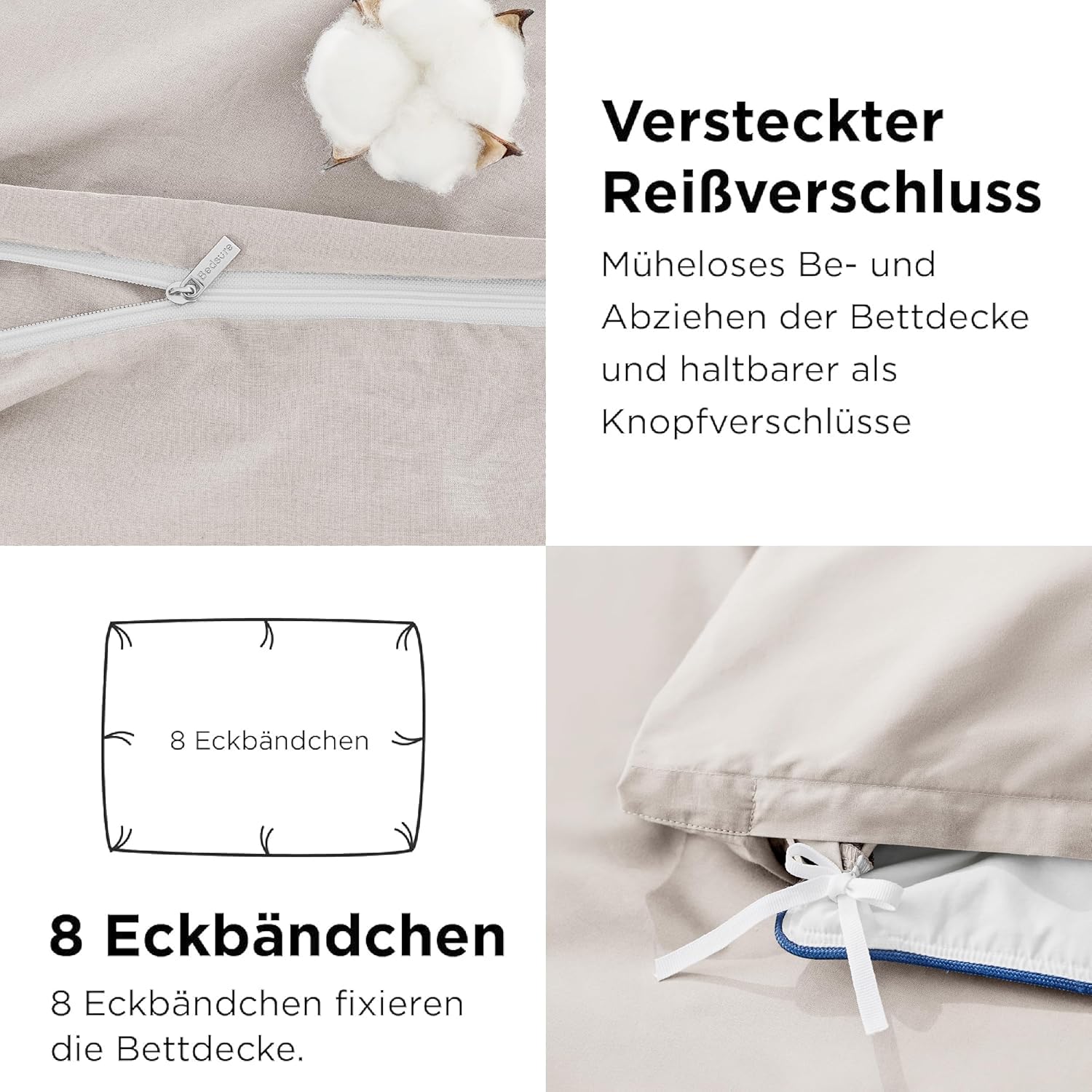 Комплект постельного белья Bedsure из хлопка 200 x 200 см. 1 пододеяльник 200 x 200 и 2 наволочки 80 x 80 см, постельное белье Oeko-Tex на молнии.