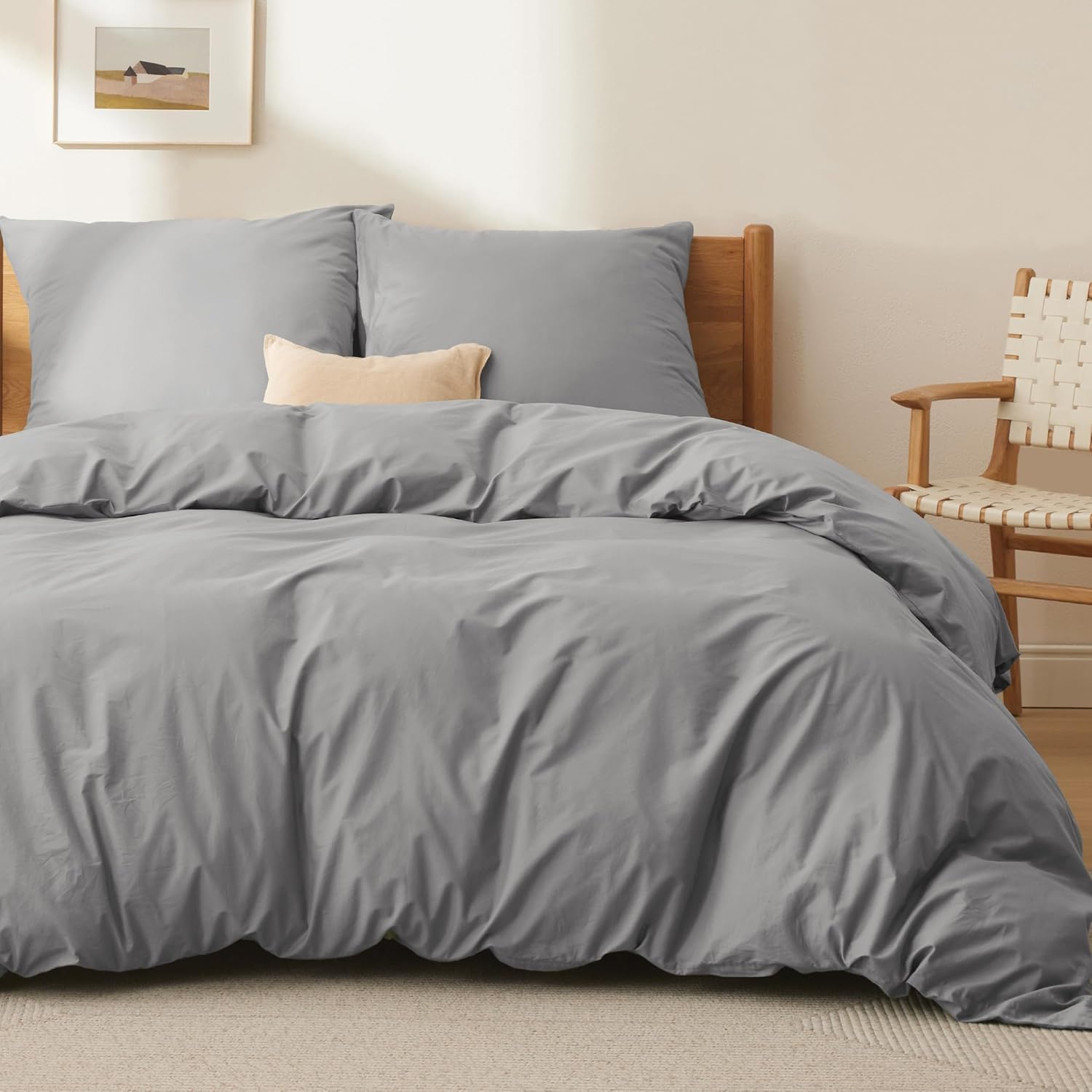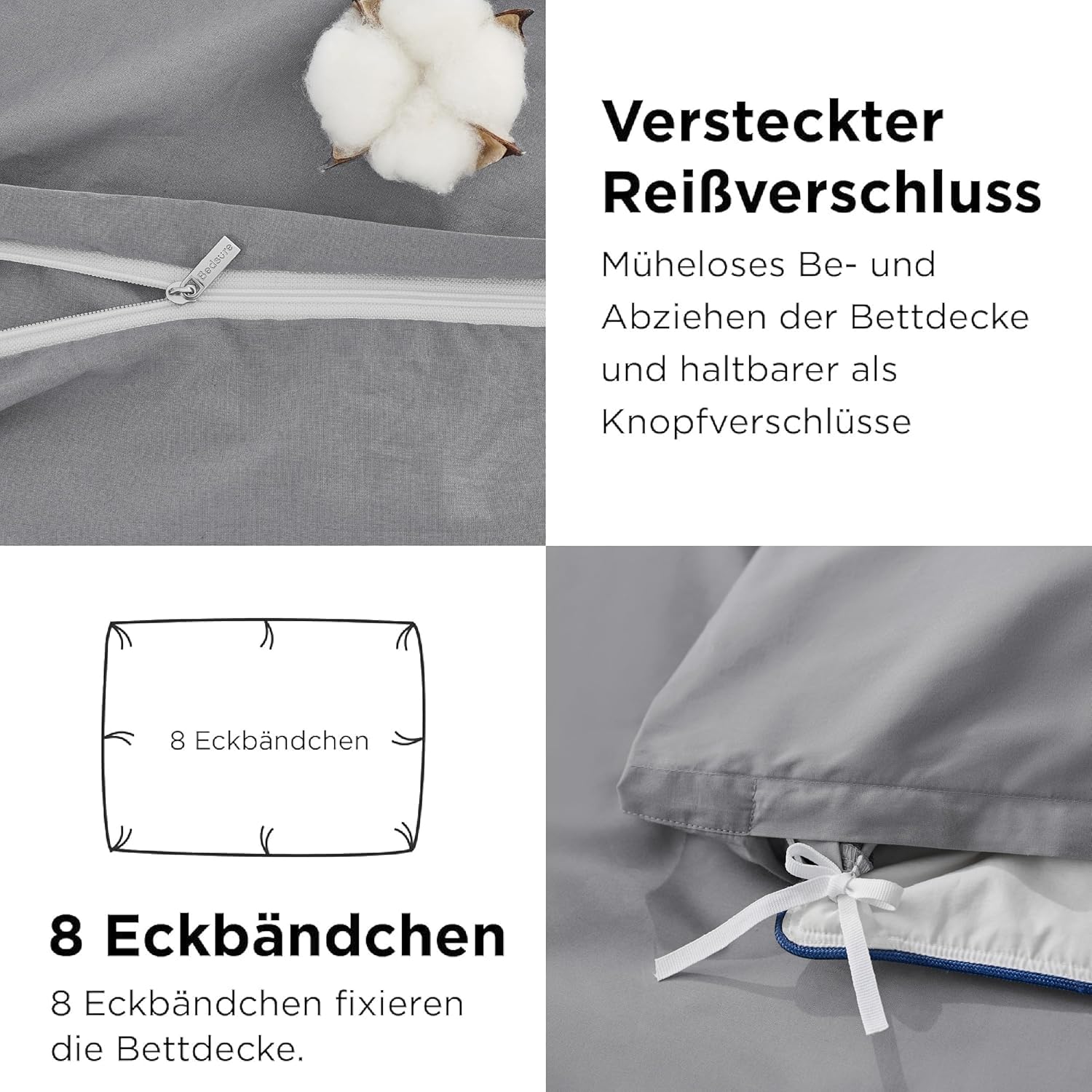 Комплект постельного белья Bedsure из хлопка 200 x 200 см. 1 пододеяльник 200 x 200 и 2 наволочки 80 x 80 см, постельное белье Oeko-Tex на молнии.