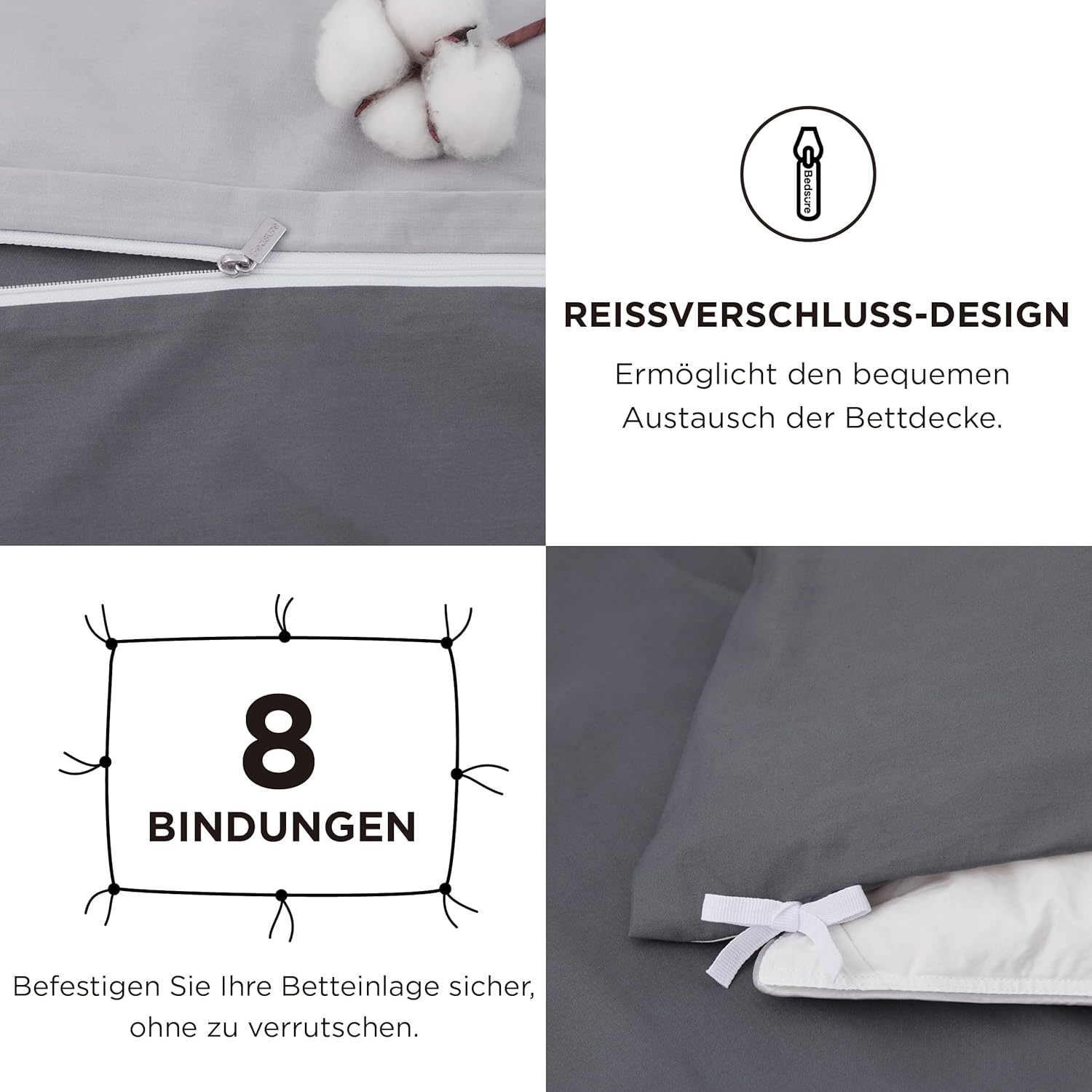 Комплект постельного белья BEDSURE из хлопка 220 x 240 см. Набор постельного белья 220 x 240 см, 1 пододеяльник и 2 наволочками 80 x 80 см, постельное белье Oeko-Tex на молнии.