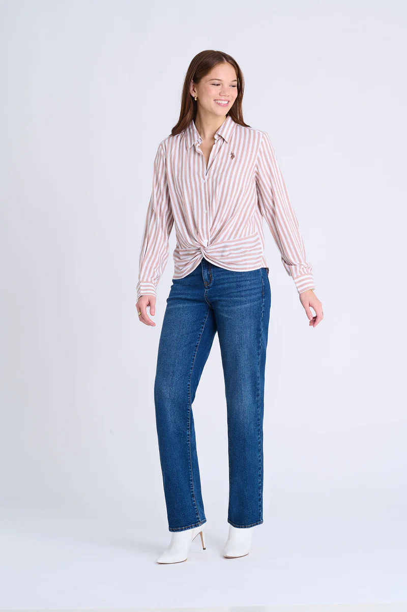 Добавьте свежести и женственности в свой гардероб с помощью рубашки US Polo Assn. с длинным рукавом и полосками в полоску . Эта классическая рубашка на пуговицах получила современное обновление благодаря эффектному узлу спереди, создающему элегантный, но свободный силуэт. Изготовленная из мягкой, дышащей хлопковой ткани, она обеспечивает лёгкость и комфорт, а её строгий вид идеально подходит как для рабочих будней, так и для выходных. Вертикальный рисунок в полоску удлиняет фигуру, а фирменный вышитый логотип US Polo Assn. на груди добавляет изысканный штрих.