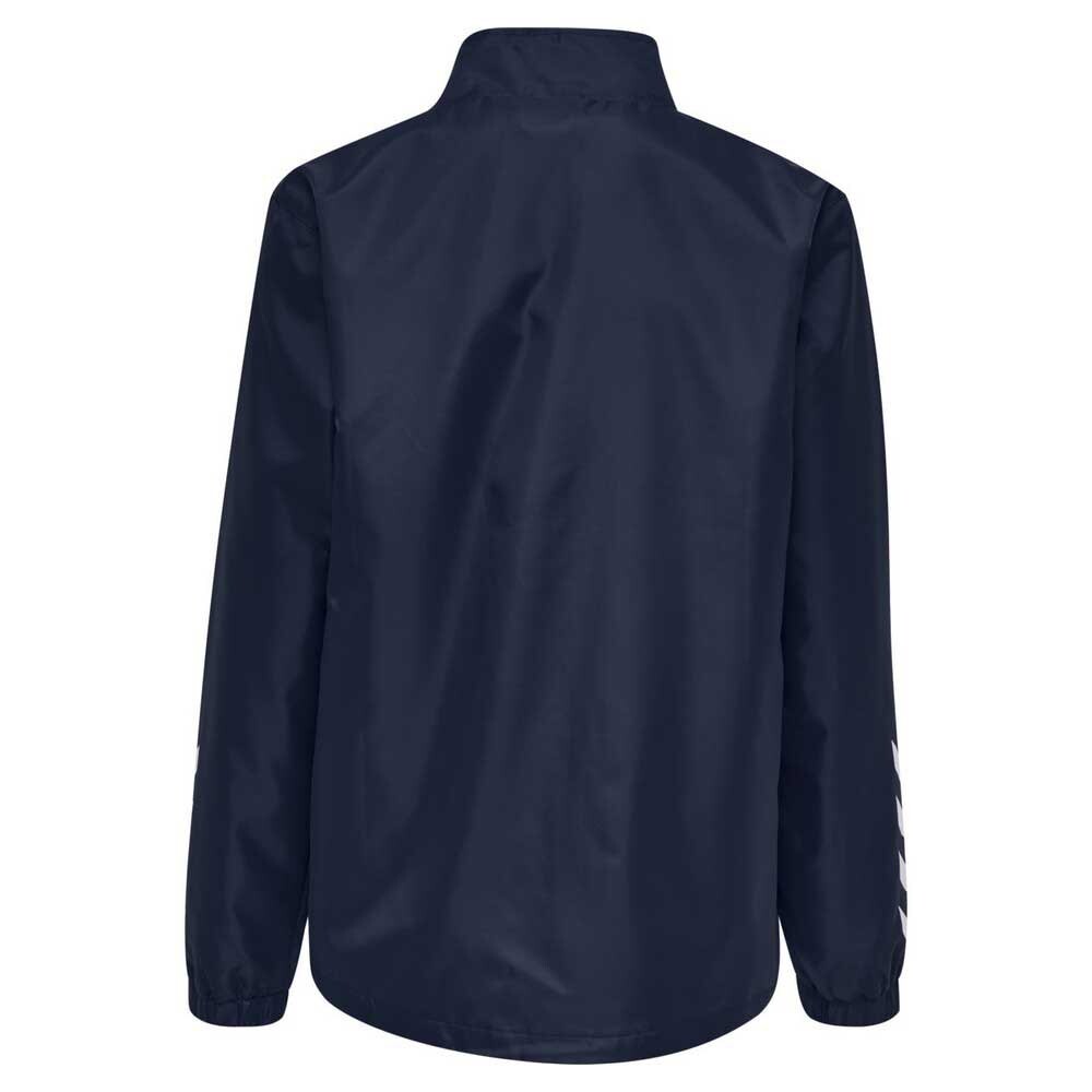 Эта дождевая куртка hummel с полной молнией спереди для легкого надевания и снятия также имеет два боковых кармана для переноски мелких предметов.
