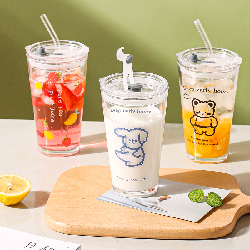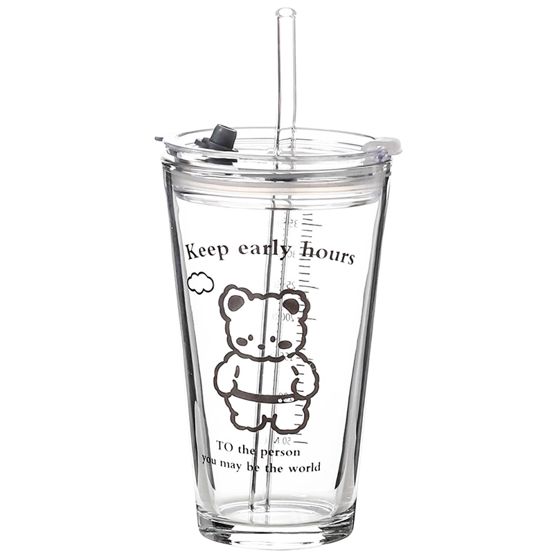 Стеклянные стаканы KAWASIMAYA, Chubby Bear Scale Glass Cup (Includes Glass Straws)