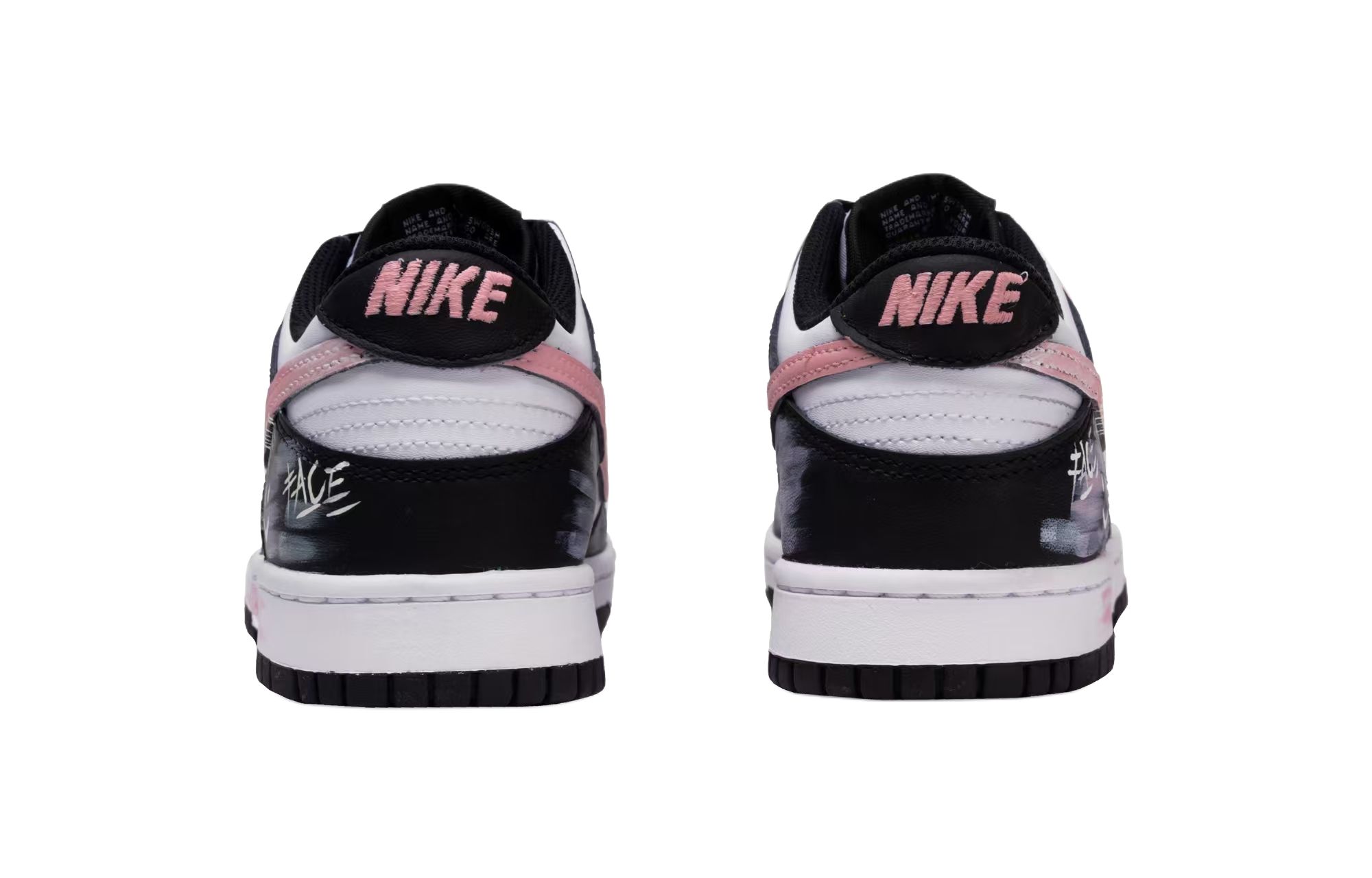 Эти кастомные кроссовки созданы на основе оригинальных кроссовок Nike Dunk Comfort and Durable Low-Top в белом и черном цветах с оригинальным артикулом HF5441-100. Верхняя часть полностью перекрашена эксклюзивной краской и украшена модными эффектами аэрозольной краски.