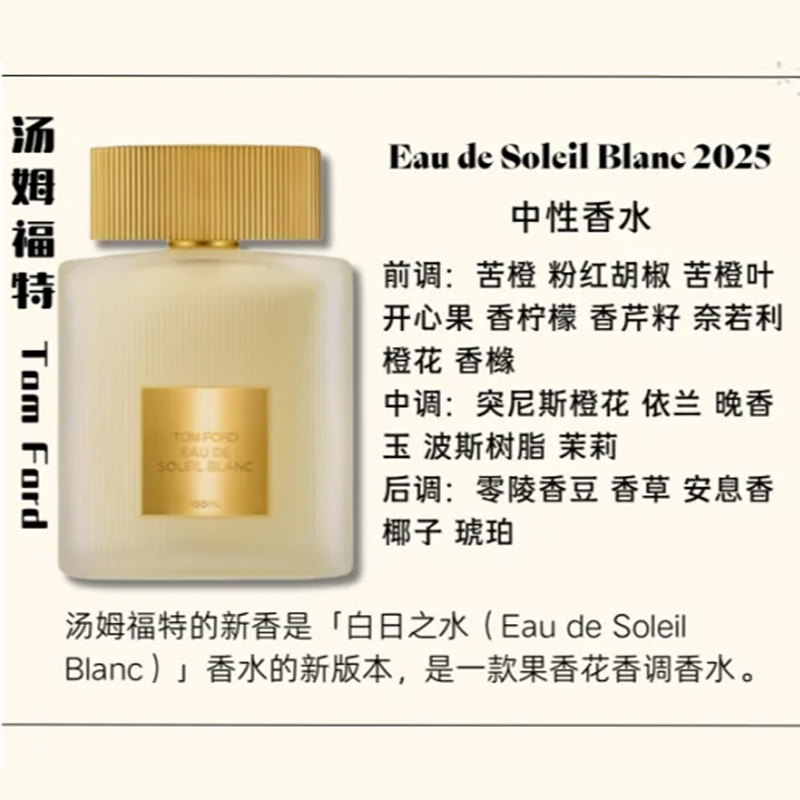 Tom Ford Eau De Soleil Blanc — унисекс туалетная вода с сияющим, солнечным и легким характером. Аромат вдохновлен ощущением света, теплого воздуха и морского бриза, создавая ощущение свежести и роскоши.