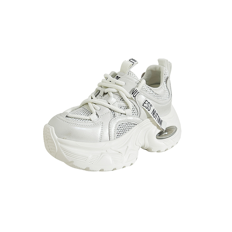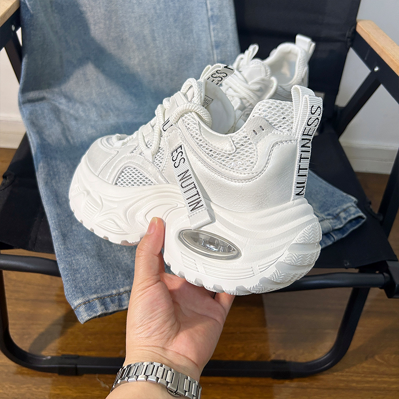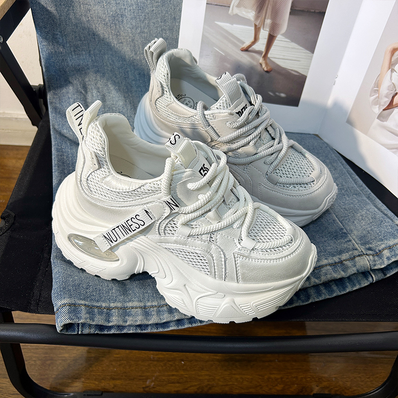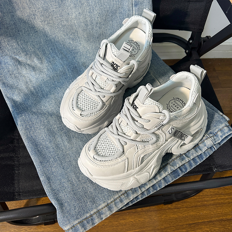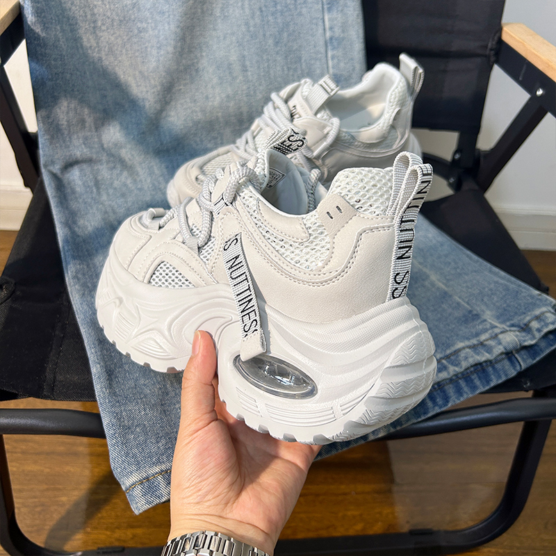 Дышащие утолщенные кроссовки на платформе для увеличения роста Low Top POOQ, Ecru