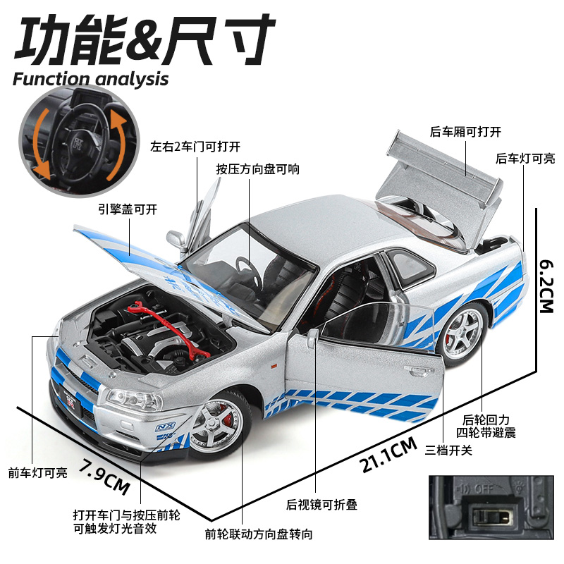 Цвет: Nissan Skyline GTR-R34 меняет цвет на фиолетовый.