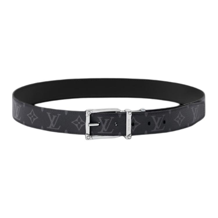 LOUIS VUITTON Ремень monogram coated canvas leather мужской black ширина 3,5 см