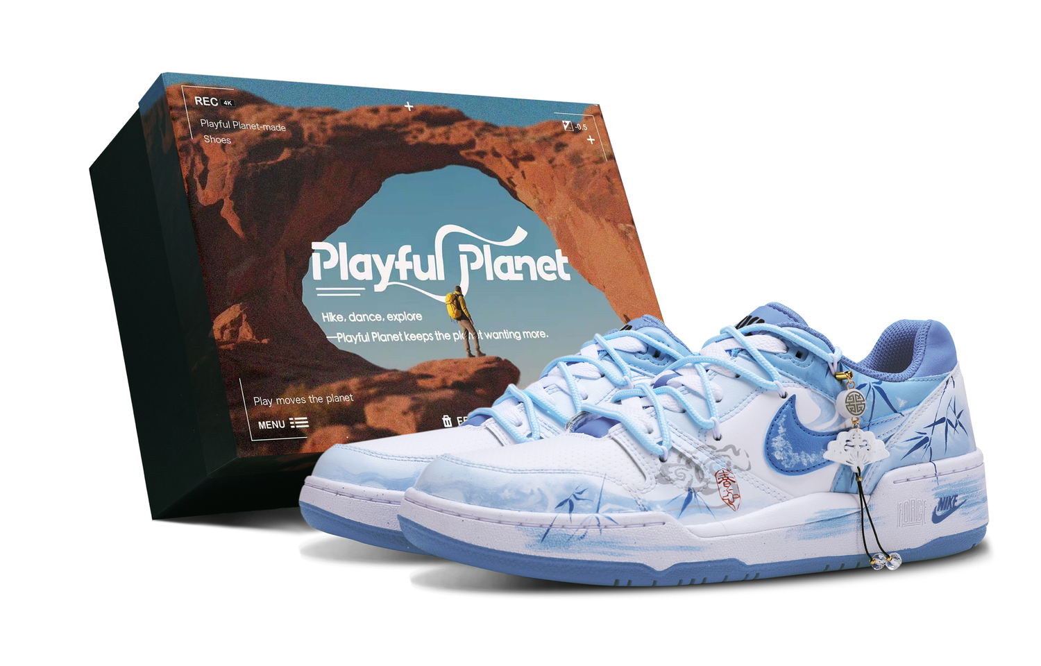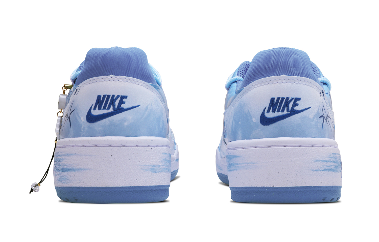 Эти кастомные кроссовки созданы на основе оригинальных детских кроссовок Nike Full Force Low. Общий дизайн включает в себя легкий градиент цвета, как и у оригинала, с верхом небесно-голубого цвета в китайском стиле. Детали включают в себя чернильные узоры в сочетании с бамбуковыми элементами, украшенными благоприятными облаками, что создает яркую и красочную китайскую эстетику, сохраняя при этом модный и современный дизайн. Кроссовки безопасны для ношения и стирки в обычном режиме. Избегайте интенсивных физических нагрузок и царапин от острых предметов. Не используйте для чистки концентрированные органические растворители; вместо этого используйте мягкую щетку и подходящее моющее средство.