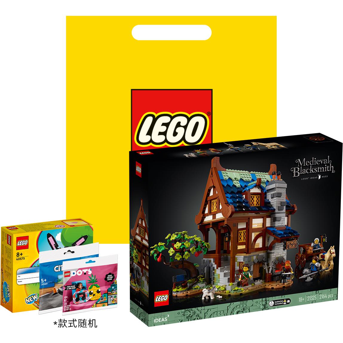 Название продукта: Средневековая кузница + Случайная коробка для мозаики * 1 + Случайная сумка для мозаики * 2 + Желтая сумка для покупок со строительными блоками (Случайный материал)