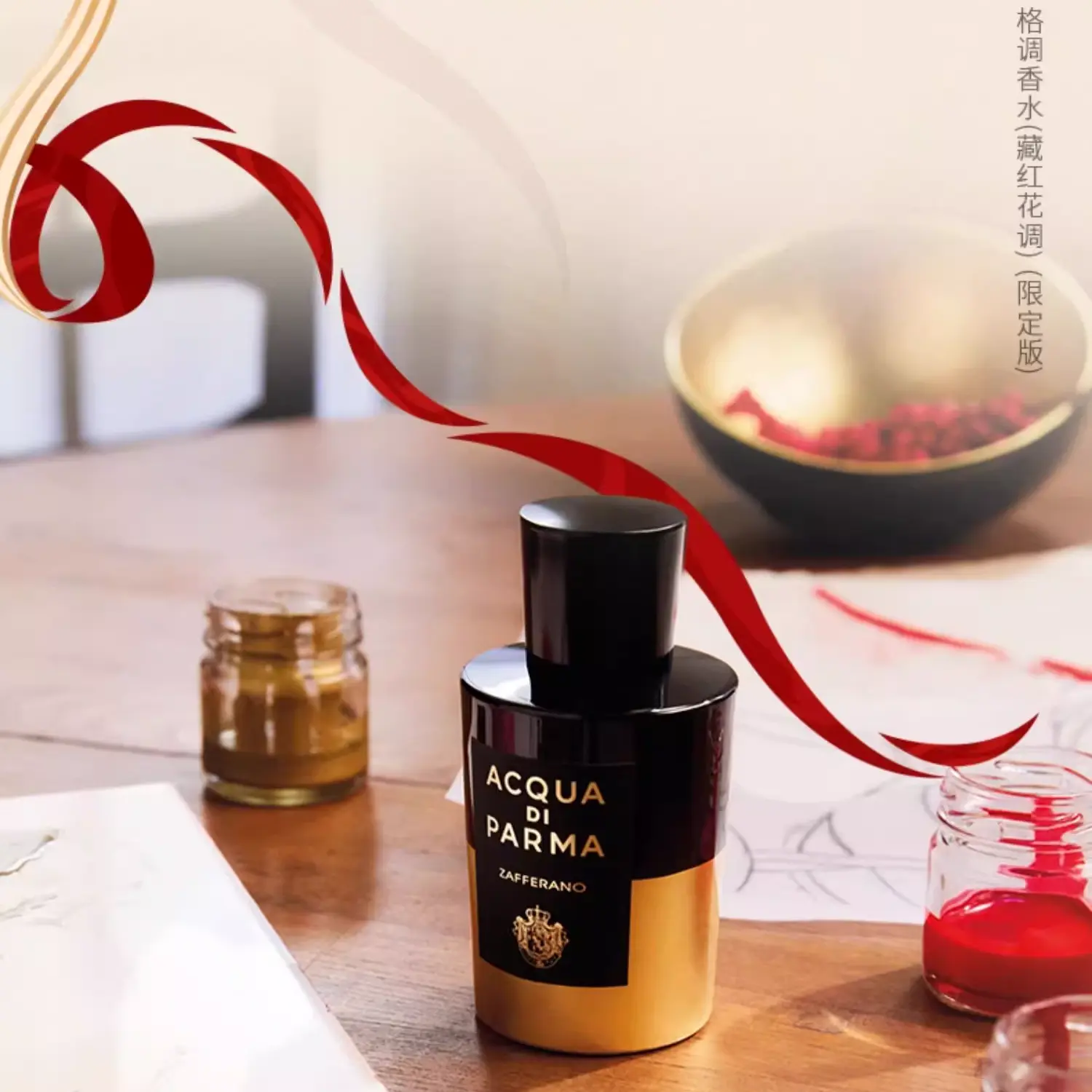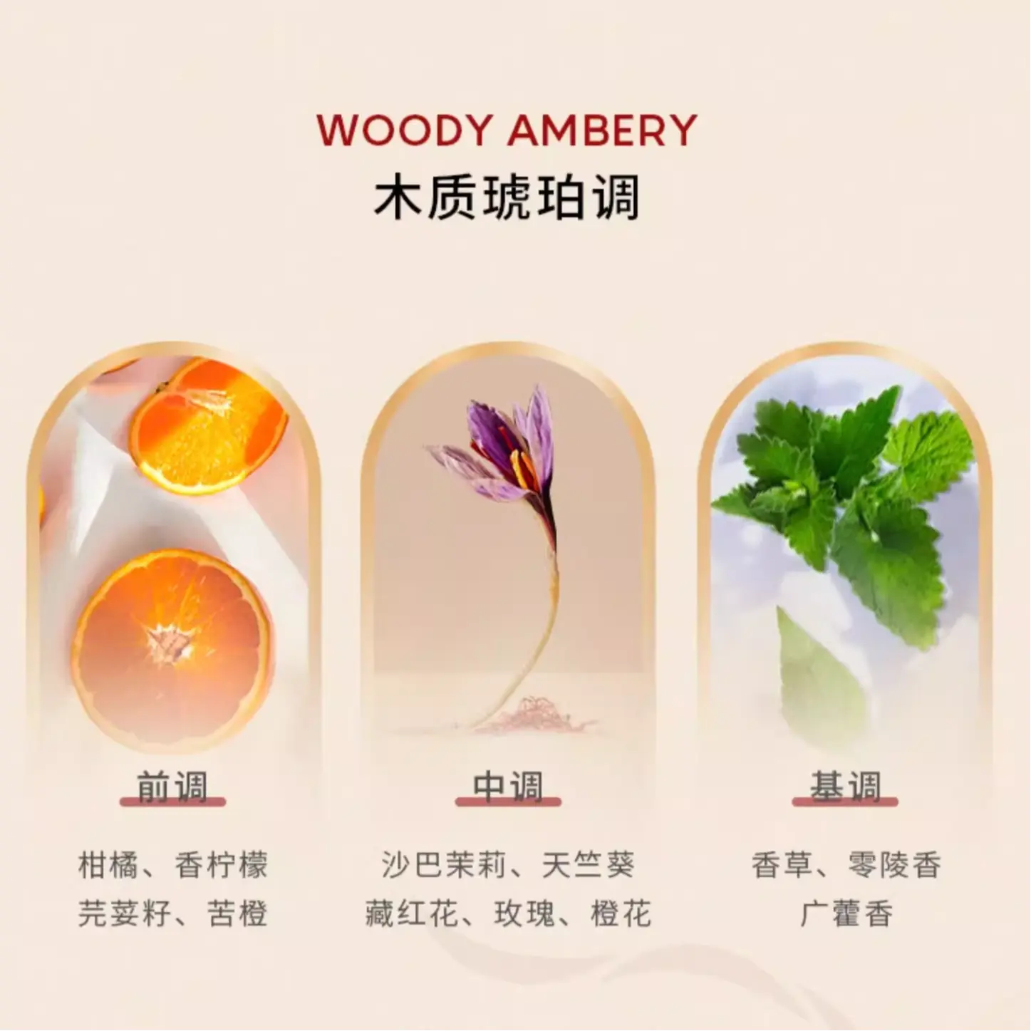 Средние ноты: шафран — центральная, пряная и благородная нота, создающая насыщенное, характерное сердце композиции.