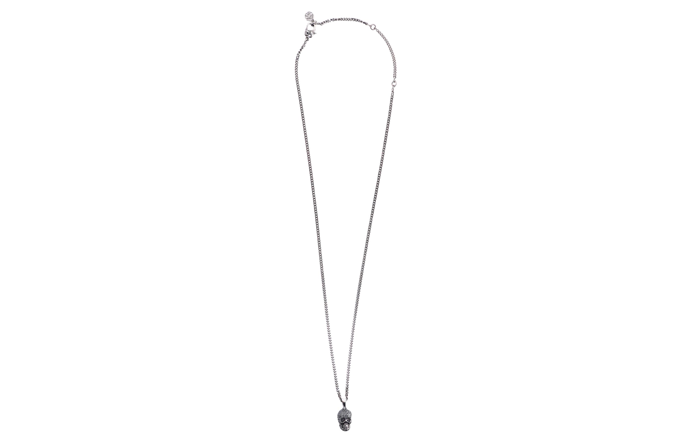 Кулон с черепом инкрустированный стразами Alexander McQueen, серебристо-серый
