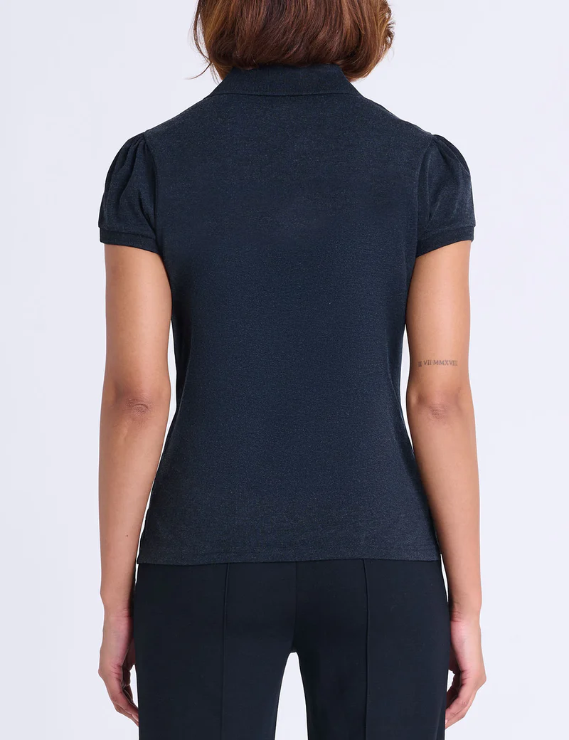Рубашка-поло с рукавами-фонариками и молнией до середины груди – современная интерпретация классической базовой вещи