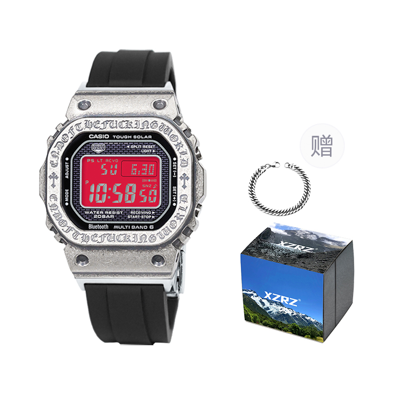 GMW-5000 — оригинальная модель G-Shock 1983 года. Серия GMW-B5000 унаследовала ее характерный квадратный дизайн и получила полностью металлическую отделку вместе с улучшенными функциями, включая связь со смартфоном. Технология высокоплотного монтажа также позволяет часам сохранять свой размер. Задняя часть часов имеет прочную винтовую застежку и обработана DLC для устойчивости к износу.