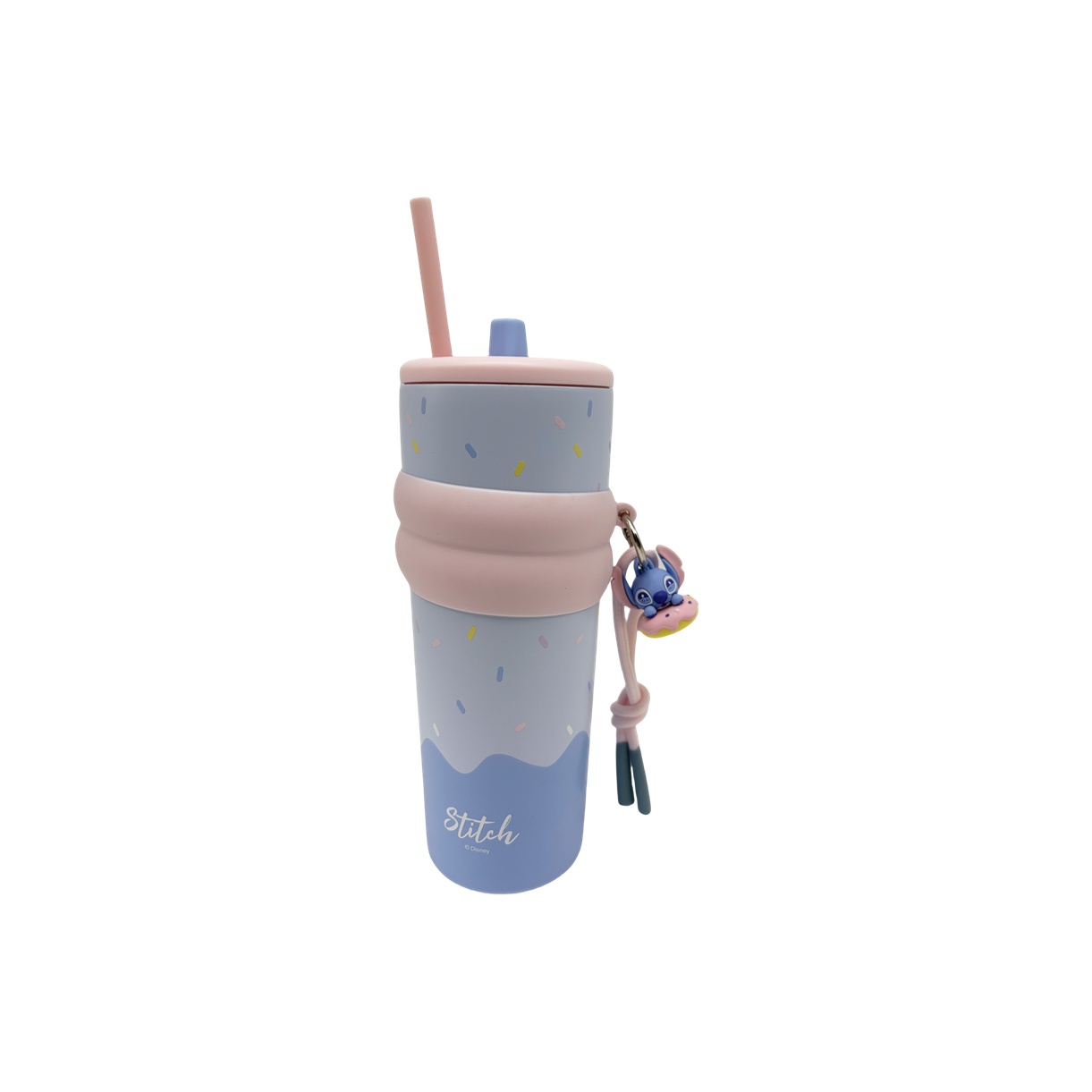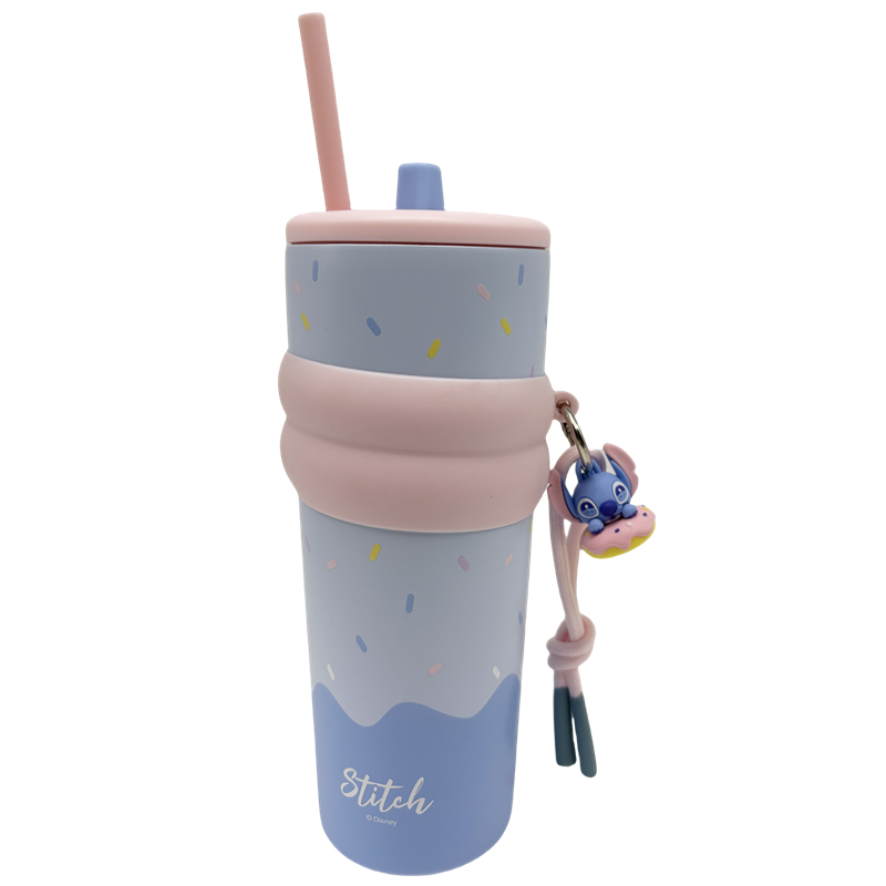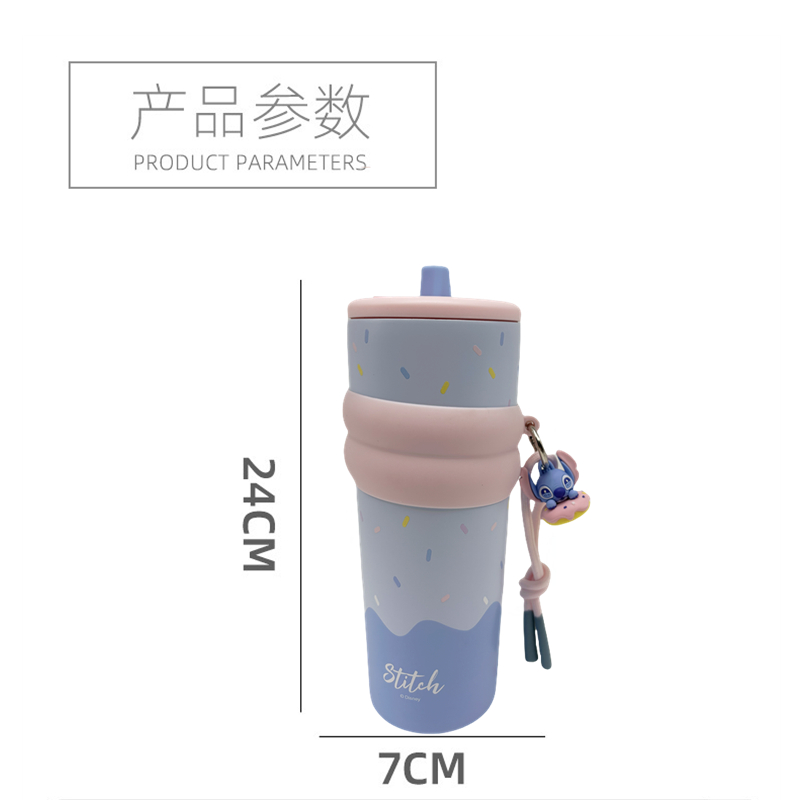 Термостакан 500 мл 800 мл Disney, Donut Double-Layer Straws Steel Cup Stitch