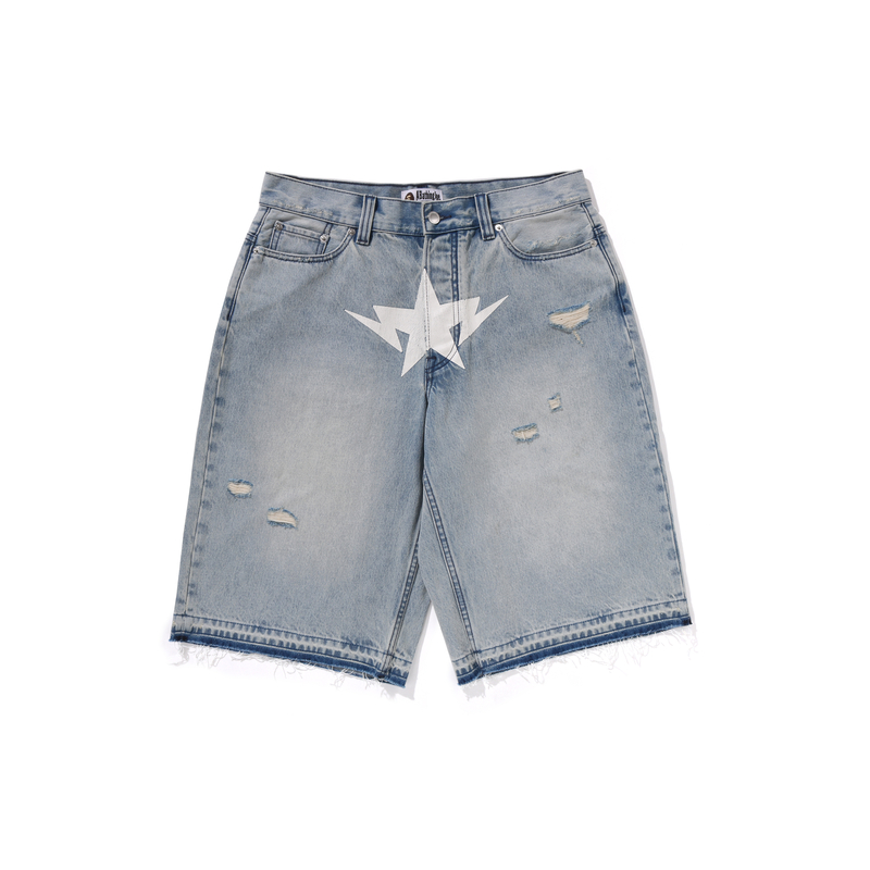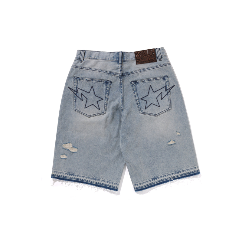 Bape Destroyed Sta расслабленные джинсовые шорты 13Oz A BATHING APE, черный