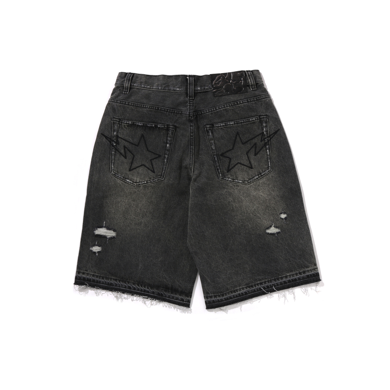 Bape Destroyed Sta расслабленные джинсовые шорты 13Oz A BATHING APE, черный 35 976₽