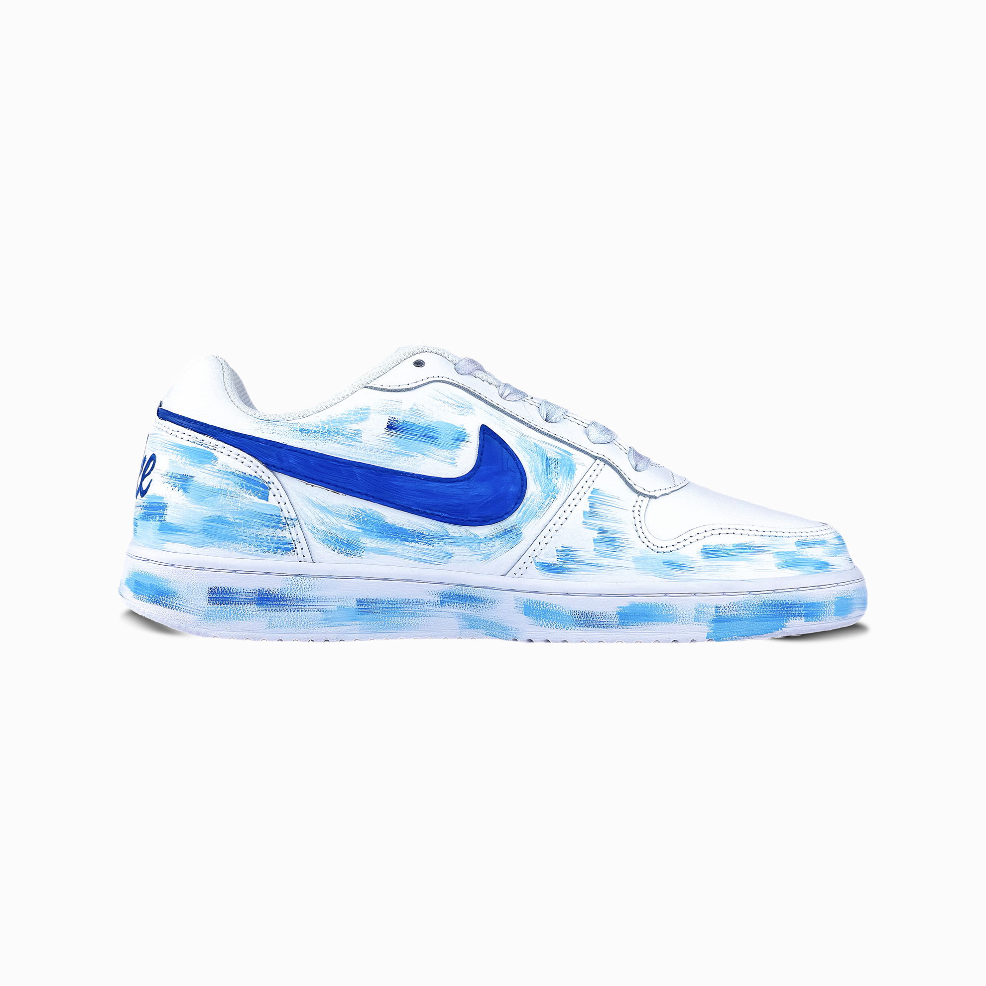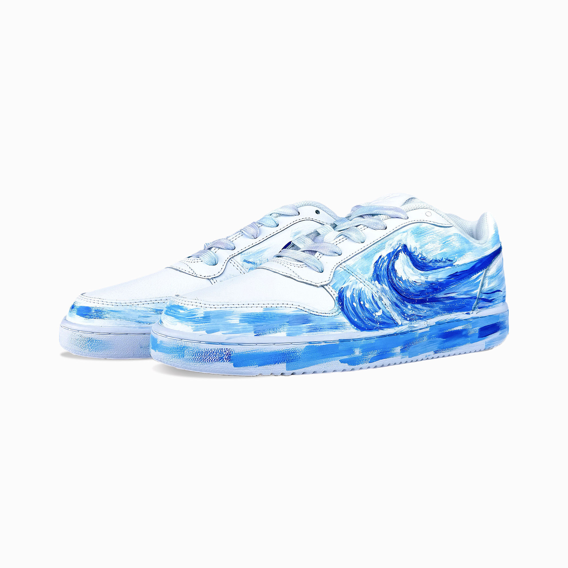 Артикул модели: AQ1775-100. Дизайн выполнен в белом цвете с синим волнистым узором на верхе. Яркие мазки кисти словно передают энергию и свободу океана. Общий дизайн свежий и артистичный, демонстрирующий уникальную индивидуальность.