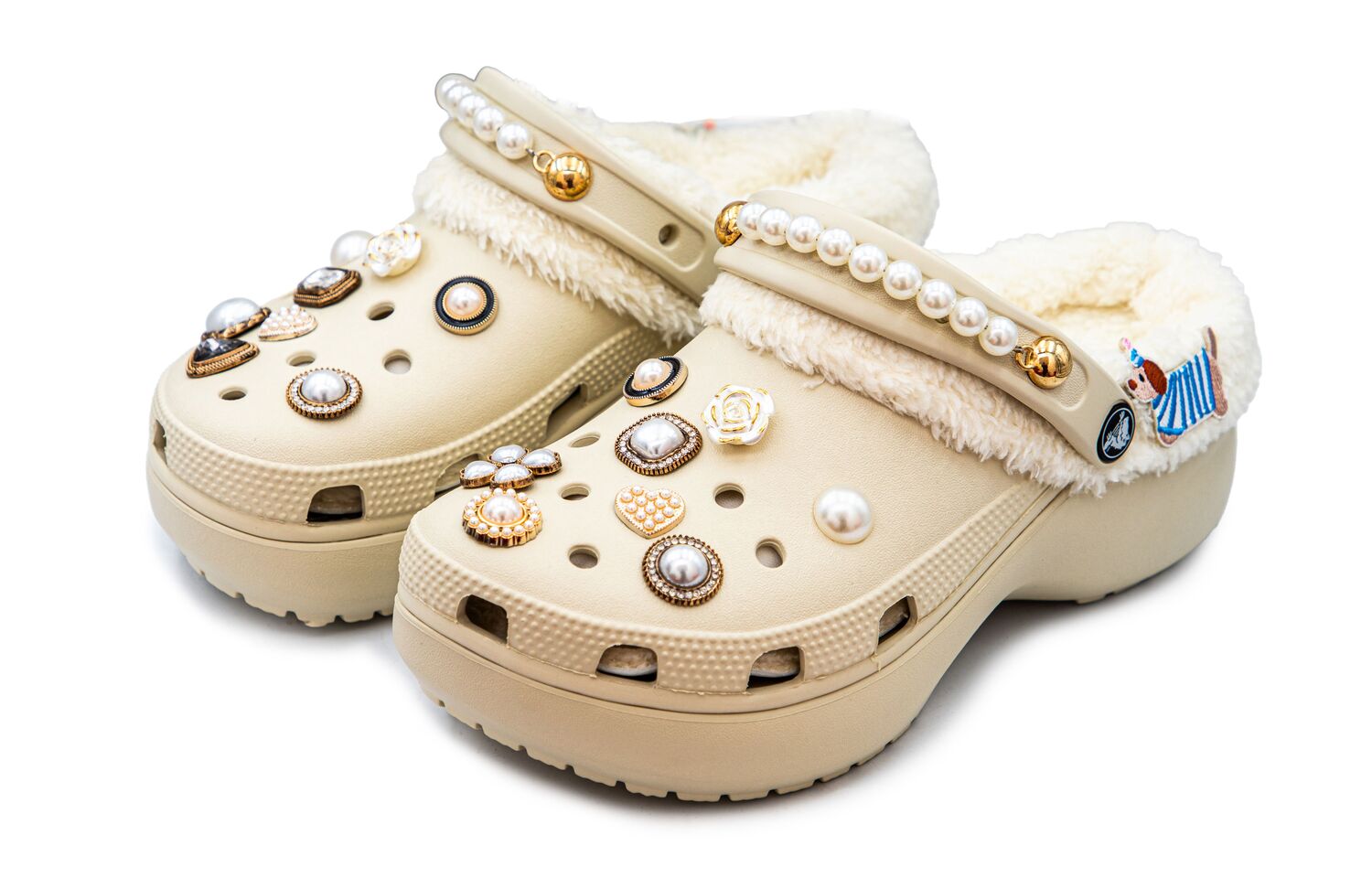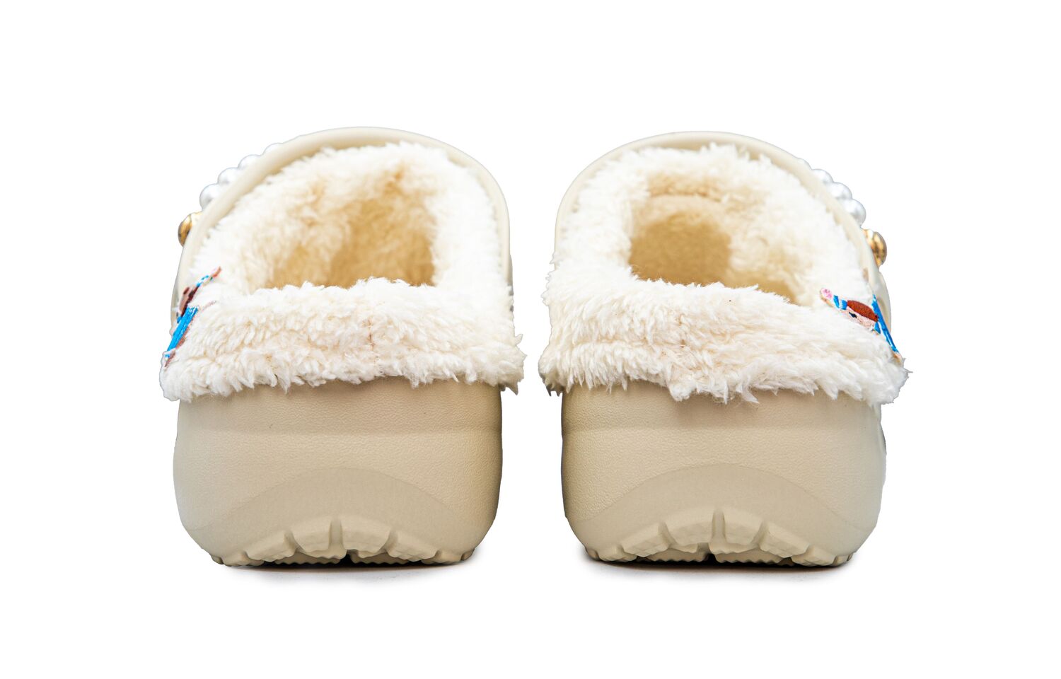 Эти кроссовки созданы на основе женских Crocs Classic Clog Cloud Beach Clog. Вдохновленные свежим и лаконичным стилем, они дополнены ремешками, цветочными украшениями и мягкой подкладкой, создающими романтическое зимнее настроение.