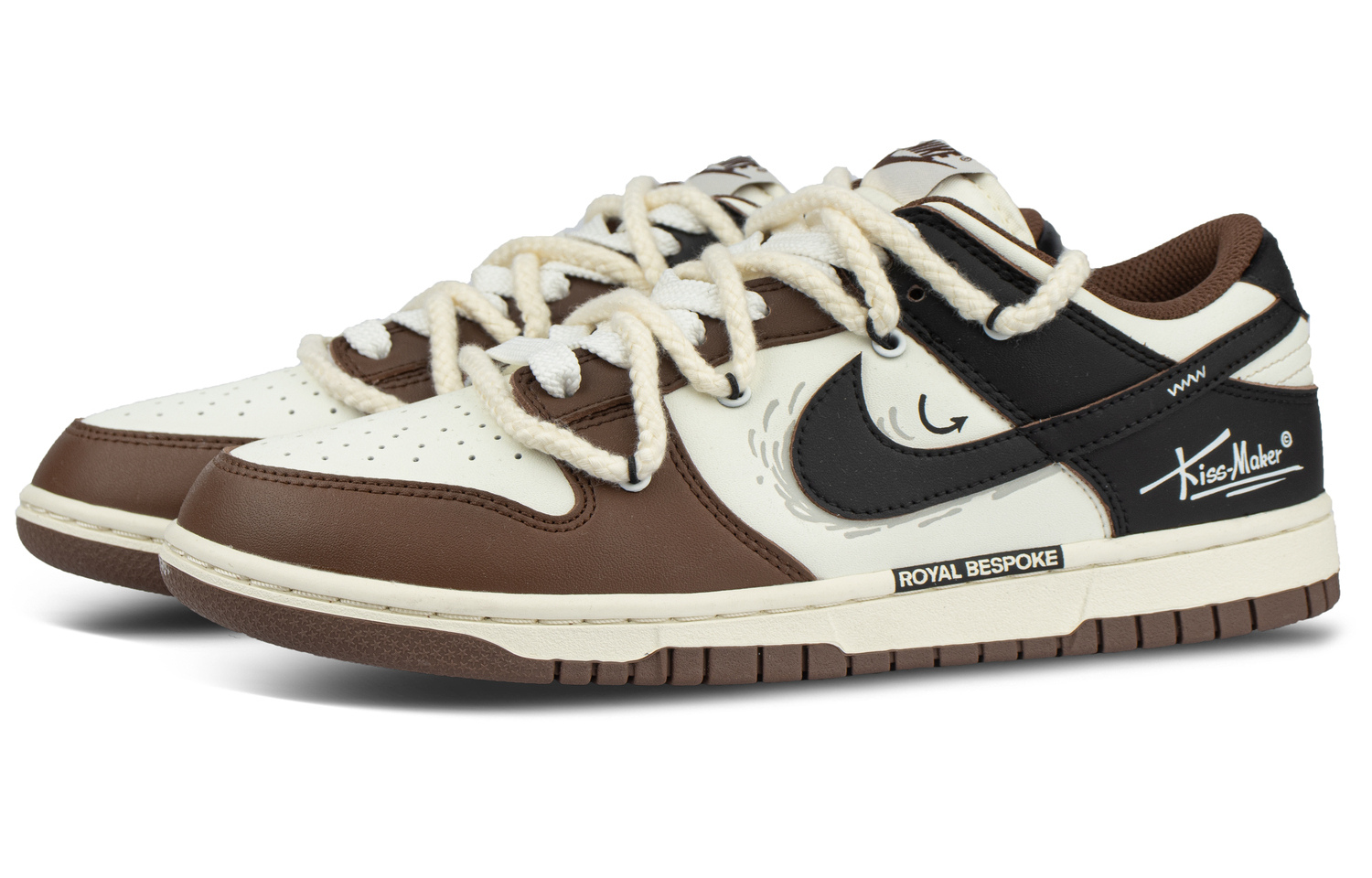 Эти кроссовки изготовлены на заказ из оригинальной кожи Nike Dunk Low «Surfaces In Brown and Sail» шоколадного цвета, нескользящие, прочные, низкие женские кроссовки коричневого и белого цвета, оригинальный артикул: DD1503-124. Вся поверхность окрашена эксклюзивной краской. Оригинальные значки и граффити, логотип с английскими буквами, персонализированные и универсальные.