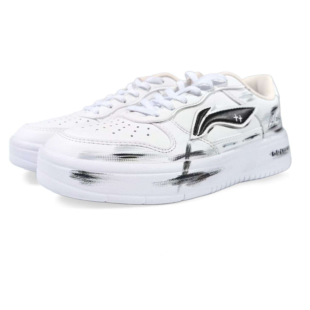 Эти кроссовки, изготовленные по индивидуальному заказу, созданы на основе оригинальной модели LiNing Floating Boat Low-Top (артикул AGCS420-6) с дополнительным артикулом AGCS419-6. Дизайн вдохновлен первозданным хаосом разбрызганных чернил, эстетикой столкновения полярной ночи и возрождением Инь и Ян в геометрической матрице.
